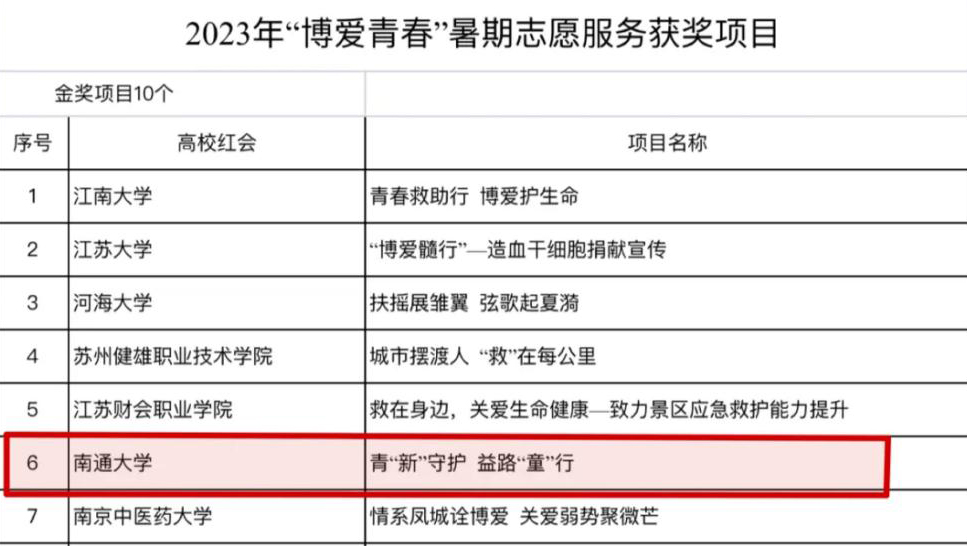 近日,2023年全省高校红十字会“博爱青春”暑期志愿服务项目总结展示活动在河海大学举行。经过项目评审,mg冰球官网商学院(管理学院)“‘青‘新’守护 ‘益’路‘童’行”项目被评为金奖项目,这是mg冰球官网第11次获得该项荣誉。