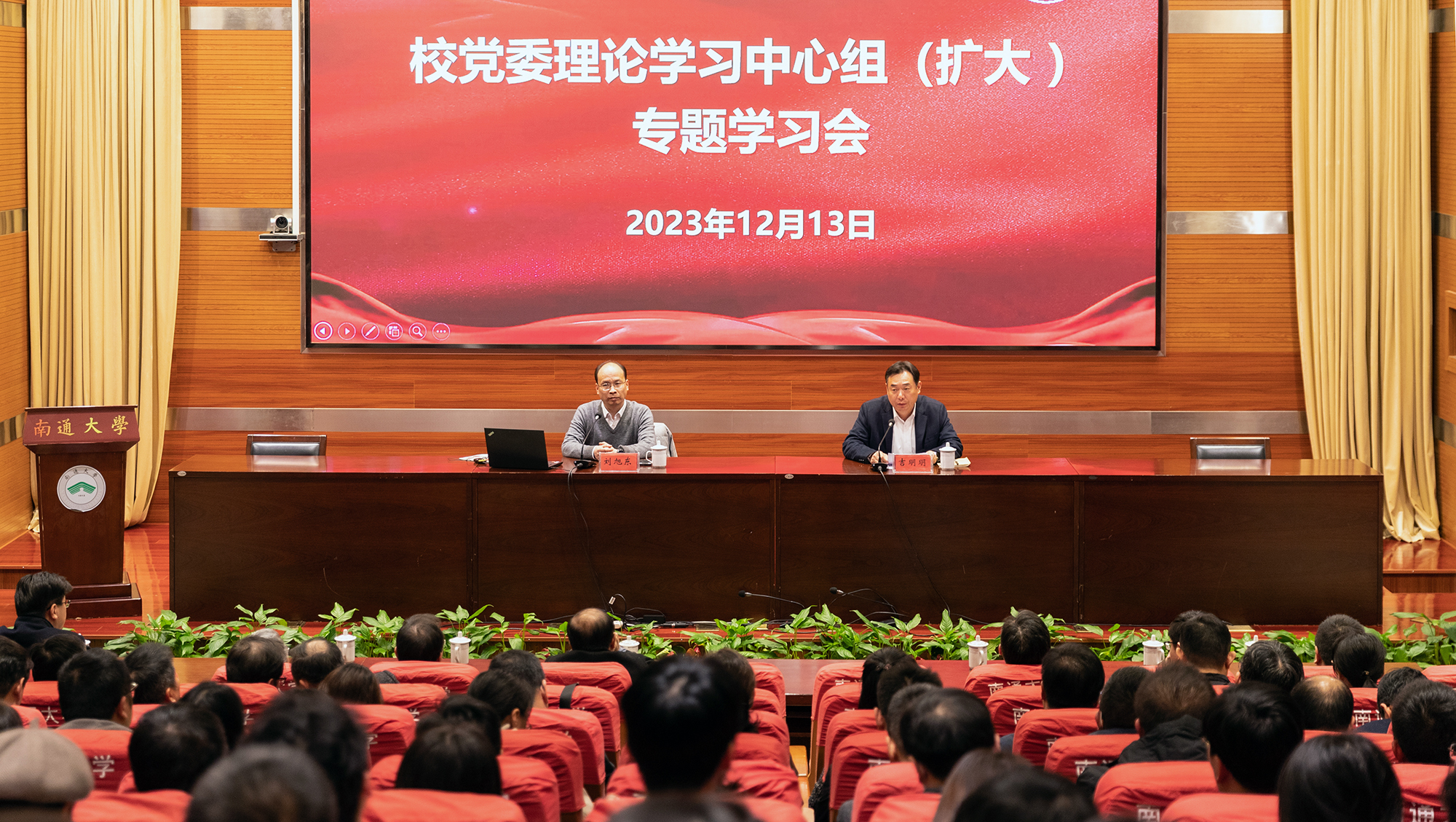 12月13日下午,mg冰球官网召开党委理论学习中心组(扩大)专题学习会,邀请省发展改革委沿海发展处处长刘旭东来校做专题辅导报告。全体在通校领导、党委常委出席会议。校党委常委、副校长吉明明主持报告会。