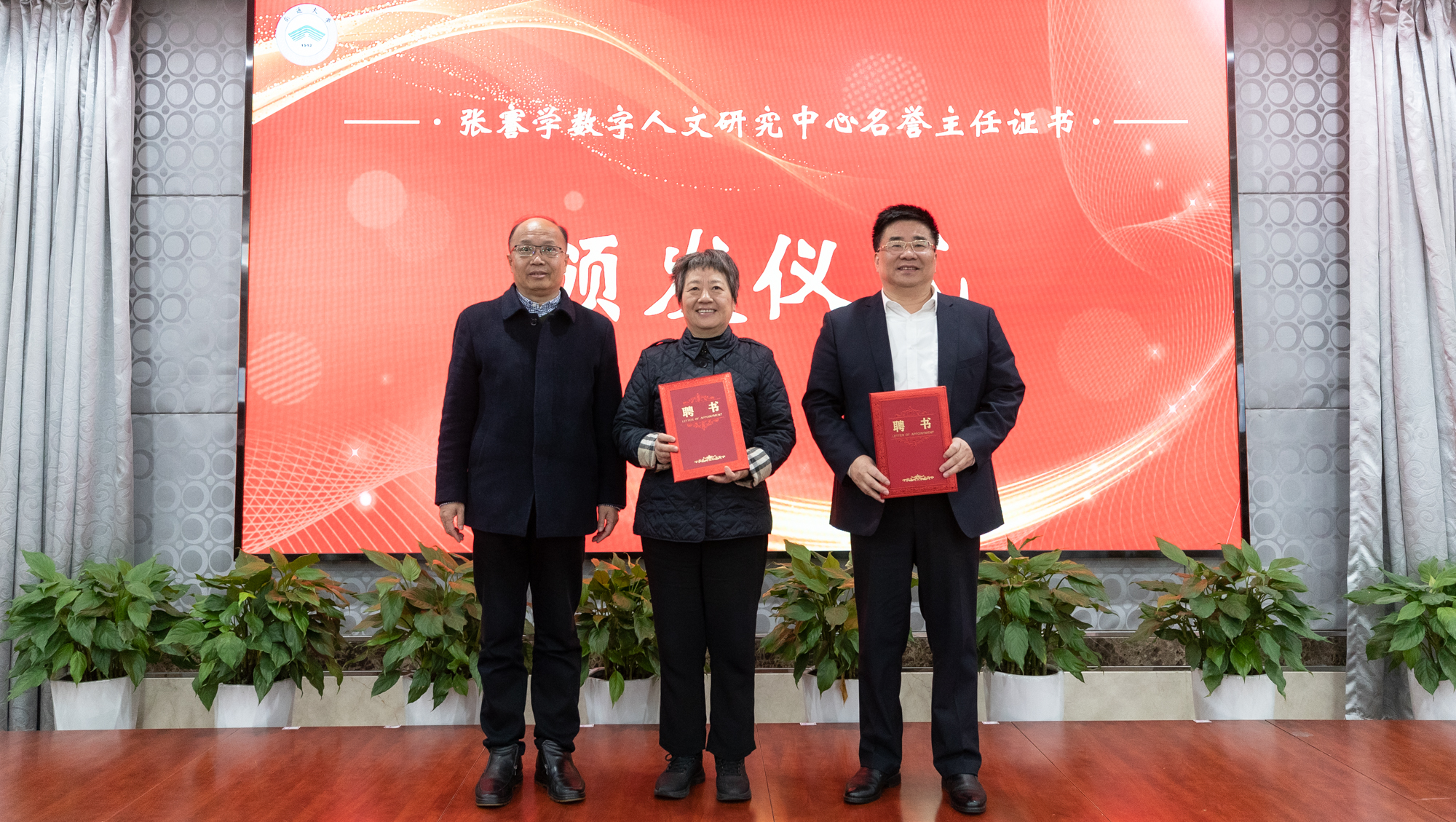 杨宇民为单晓鸣、董正超颁发张謇学数字人文研究中心名誉主任聘书