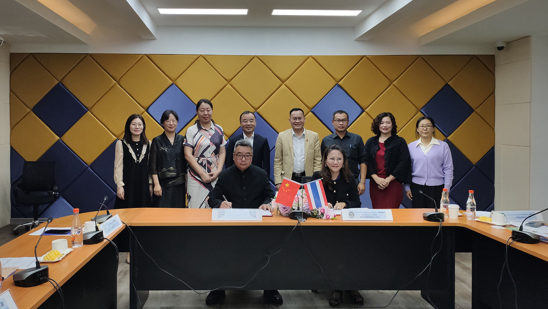 在泰国清莱皇家大学,代表团与该校校长Sornchai Mungthaisong、国际学生教育管理中心主任Sahattaya Sitticised、中泰人文社科高等研究院院长吴立杰等进行了深入交流。双方就已有框架协议下推动实质性合作展开探讨,表示将在教师互访、学生交换、硕士博士培养等领域开展合作。艺术学院院长张卫与Sahattaya Sitticised签署了艺术设计与传播艺术专业硕士博士研究生项目协议。