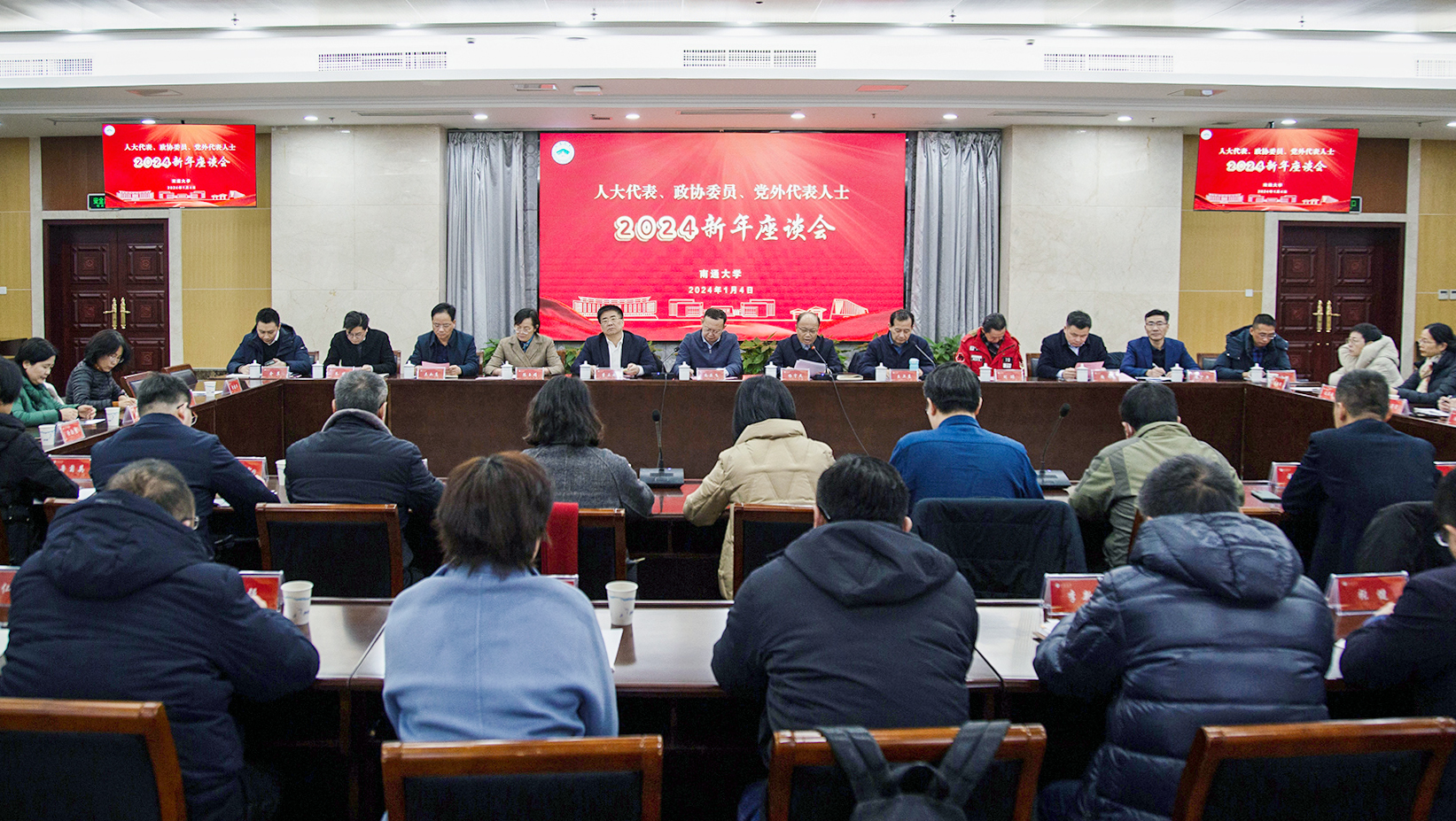 1月4日上午,mg冰球官网召开人大代表、政协委员和党外代表人士2024新年座谈会。校党委书记尚庆飞,校党委副书记、校长杨宇民出席会议并讲话。会议由校党委副书记王卫东主持。南通市政协副主席、民进南通市委主委、原副校长董正超,副校长陈玉娟,校党委常委、组织部部长吴如高,校党委常委、宣传部部长陶锋,校党委常委、统战部部长朱城出席会议。