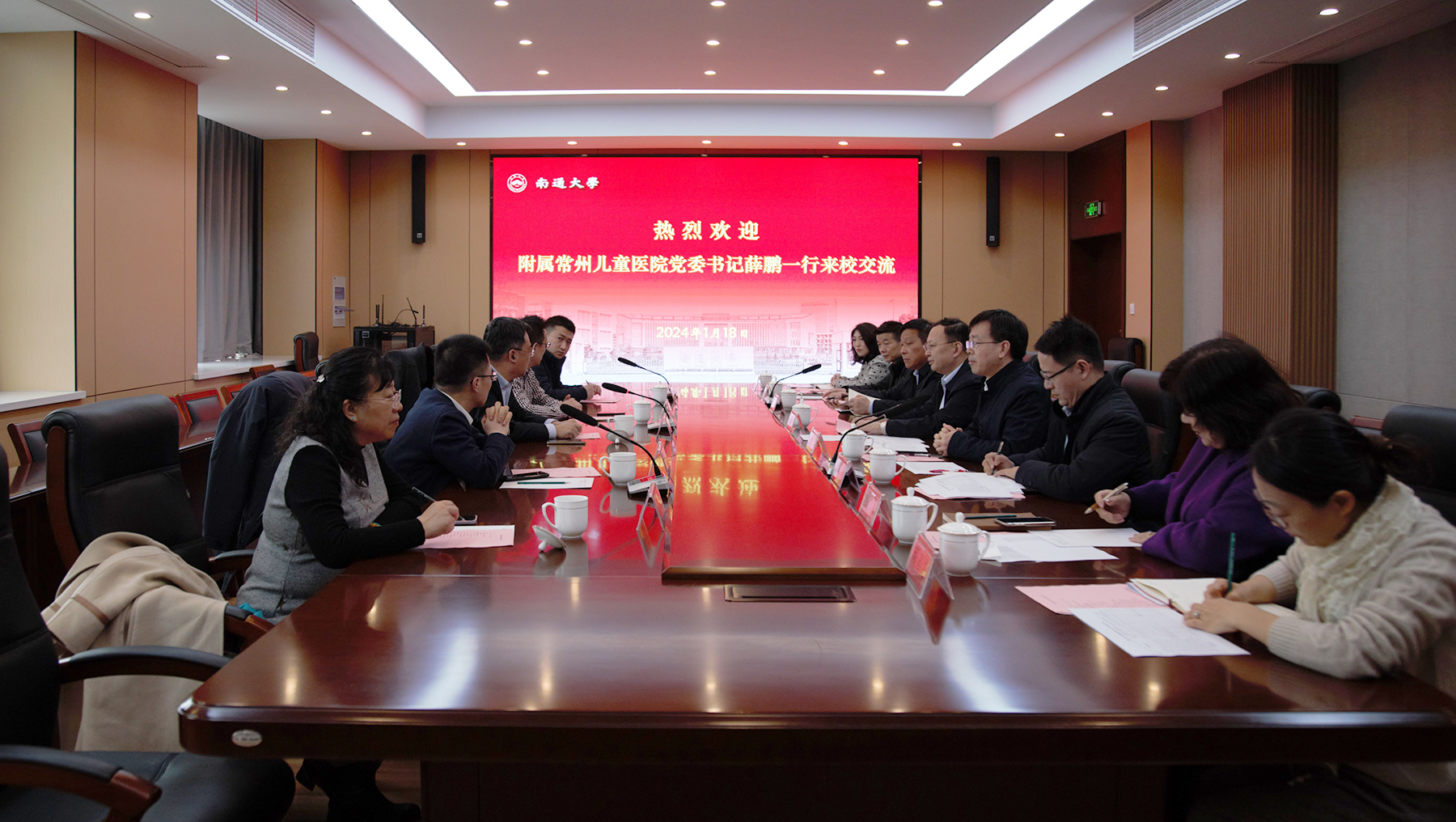 1月18日上午,附属常州儿童医院党委书记薛鹏、院长周栋一行来校交流。校党委书记尚庆飞出席交流会并讲话,校党委常委、副校长施佺主持交流会。