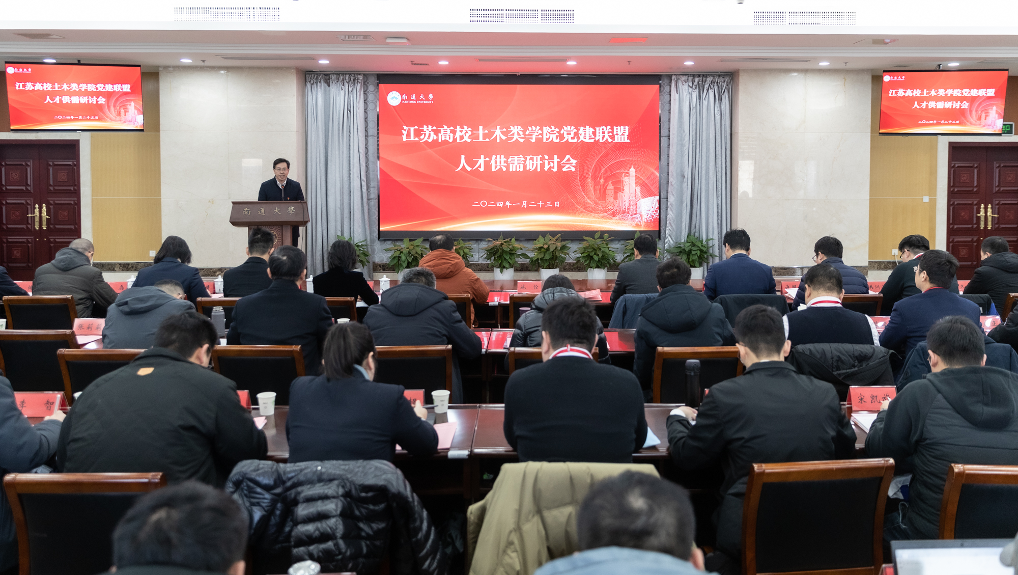 1月23日—24日,江苏高校土木类学院党建联盟人才供需研讨会在mg冰球官网召开。来自全省高校土木类学院的专家及建筑企业代表齐聚一堂,围绕“土木类专业人才培养与企业需求”进行交流研讨。江苏省土木建筑学会秘书长卢红标,新华日报社新华传媒智库主任孔德信,校党委常委、副校长施佺,校党委常委、组织部部长吴如高,南通市人才服务中心主任张纪芝等出席会议。