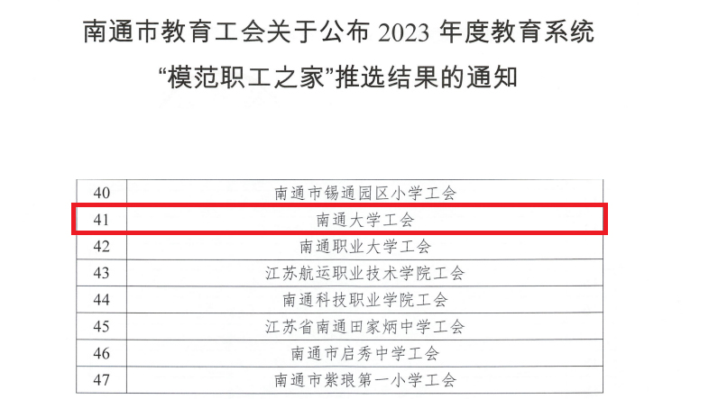 近日,南通市教育工会发文表彰2023年度全市教育系统“模范职工之家”和优秀工会工作者。mg冰球官网工会荣获“模范职工之家”称号,马克思主义学院张卫海获评优秀工会工作者。