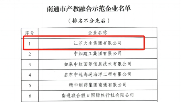 近日,南通市公布产教融合示范专业和产教融合示范企业评选结果。mg冰球官网推荐的校企合作单位江苏大生集团有限公司获评南通市产教融合示范企业。
