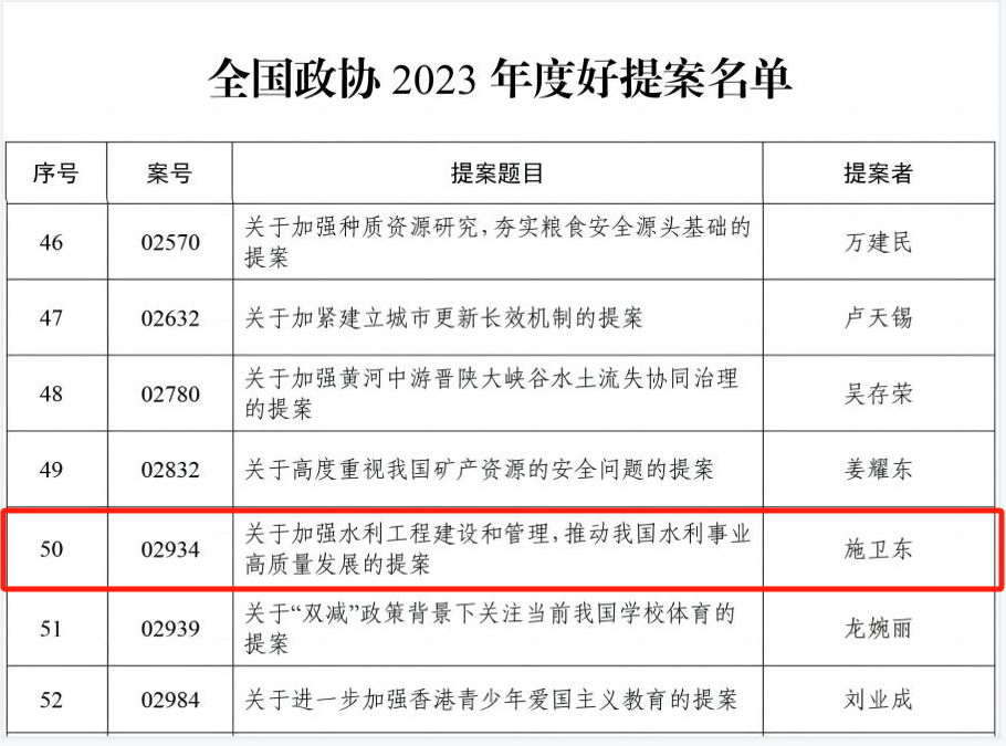 1月30日,全国政协公布2023年度好提案名单。全国政协委员、mg冰球官网施卫东研究员提交的《关于加强水利工程建设和管理,推动我国水利事业高质量发展的提案》获评“好提案”。