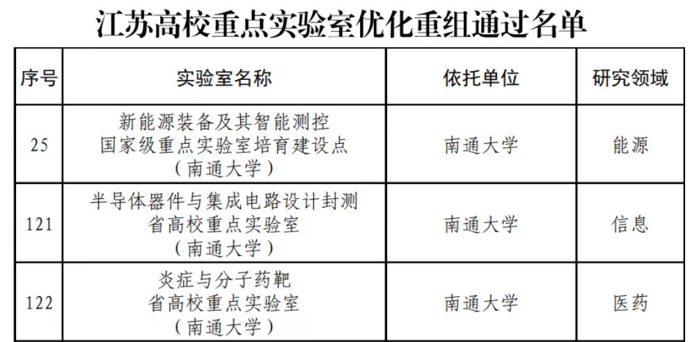 近日,江苏省教育厅公布省高校重点实验室优化重组通过名单。mg冰球官网新能源装备及其智能测控、半导体器件与集成电路设计封测、炎症与分子药靶等三个省高校重点实验室全部通过评审,其中新能源装备及其智能测控实验室升级为国家级重点实验室培育建设点。