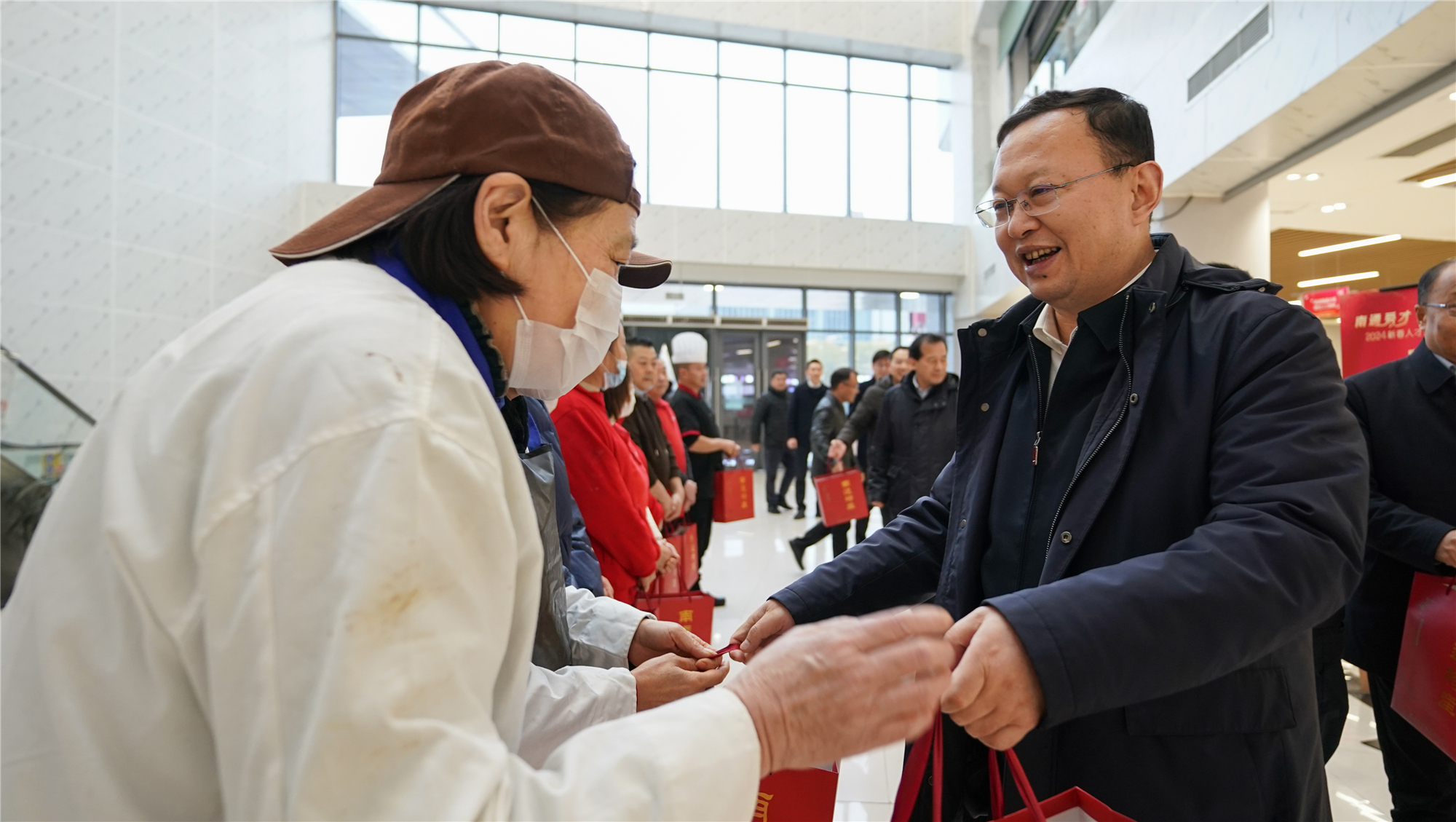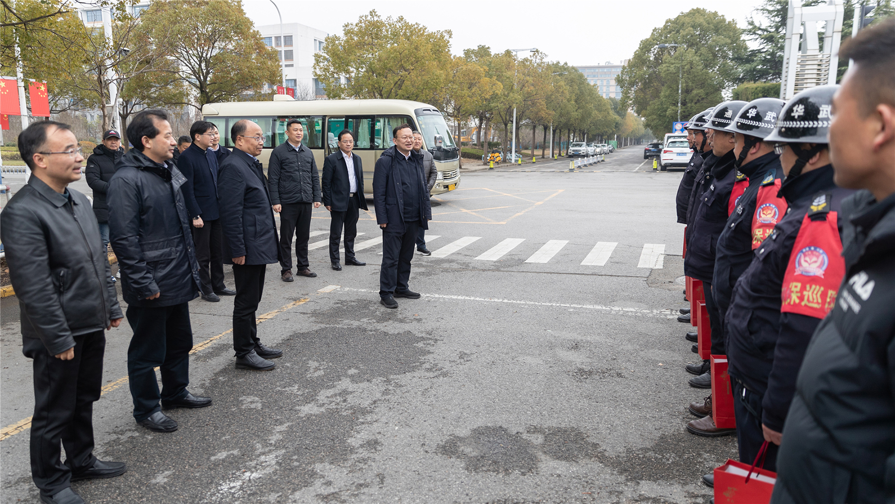 尚庆飞、杨宇民、王卫东、陆俊杰一行还先后来到啬园校区第三食堂、高配值班室、20号公寓楼、祈通大道环卫现场、西门等后勤服务点,看望慰问假期坚守工作岗位的后勤职工,感谢他们的默默奉献、辛苦劳作。校领导与后勤职工亲切交谈,详细了解寒假期间饮食服务、高配值班、宿舍管理、安全巡逻等方面的情况,并询问关心大家的身体和生活情况,希望大家要牢固树立安全防范意识,高度重视值班工作,为留校师生做好学习、生活等各方面的服务保障。