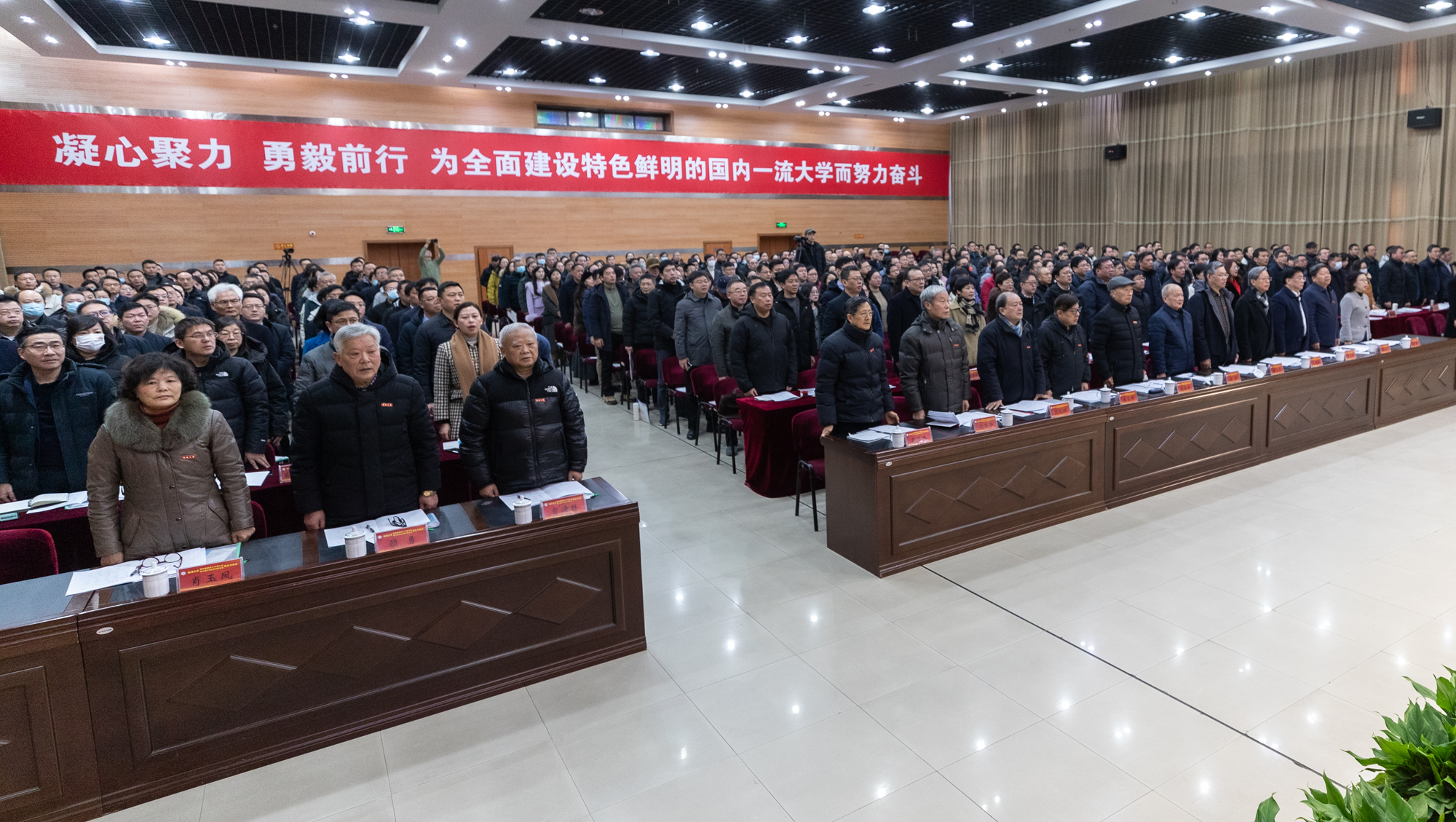 杨宇民代表学校作了题为《抢抓机遇 乘势而上 为建设特色鲜明的国内一流大学努力奋斗》的工作报告。报告从思想引领坚定有力、顶层设计科学长远、教育教学改革持续深化、人才培养质量不断提高、师资队伍建设成效显著、学科塑原造峰步伐加快、科研创新能力持续攀升、社会服务能力显著增强、国际化进程不断加快、内部治理体系日益完善、办学条件持续改善、党的建设纵深发展等十二个方面详细回顾了学校2023年事业发展情况。
