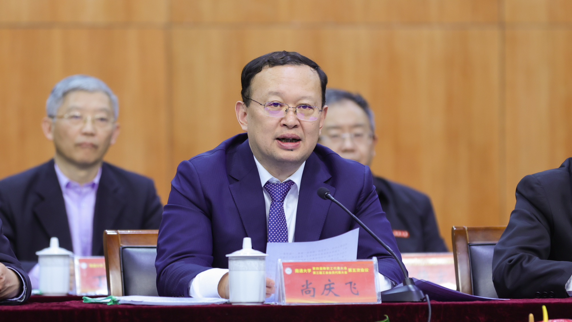 尚庆飞作了题为《凝心聚力加油干 全力以赴抓落实》的讲话。他指出,过去的一年,学校牢牢把握高质量发展这个首要任务,凝心聚力,谋篇布局,加快破解事业发展中存在的结构性难题,推动学校各领域工作都出现了一系列具有关键性作用的积极变化,学校事业高质量发展呈现出蒸蒸日上、欣欣向荣的良好态势。他表示,2024年是中华人民共和国成立75周年,是全面完成“十四五”规划的关键一年,也是习近平总书记擘画“强富美高”新江苏宏伟蓝图的第十个年头;是全面贯彻落实校第四次党代会精神的开局之年,是项目化推进“名城名校”融合发展战略的首战之年、关键之年,也是三校合并组建20周年,更是学校中层领导班子集中换届后全面履新的一年,全力以赴做好今年的各项工作,事关全局、意义重大。当前,摆在我们面前的主要任务就是,要乘着奋发进取的良好势头,凝心聚力加油干、全力以赴抓落实,把“规划图”变成“施工图”,把“时间表”变成“里程表”,扎实推动高质量发展各项工作实现新突破、开创新局面。