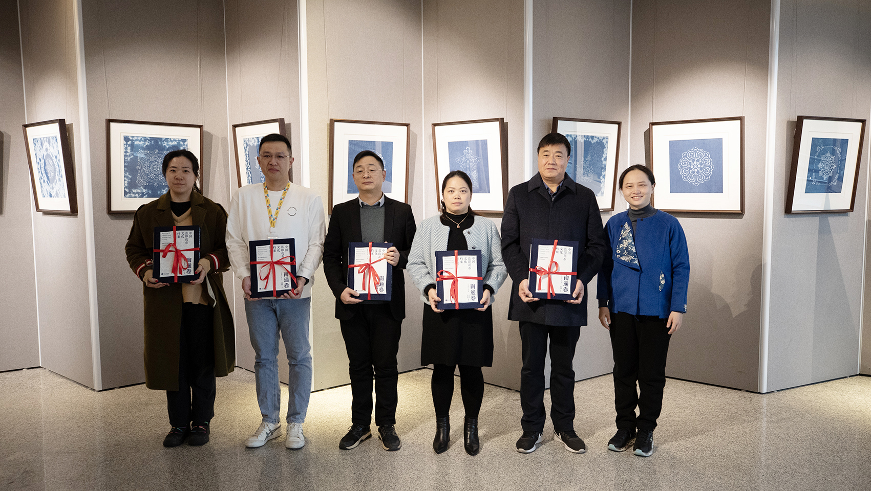 南通市委党史办、南通市地方志办、南通市文联、南通市图书馆、南通市非遗保护中心,以及mg冰球官网纺织服装学院相关负责人参加活动,并接受《中国蓝印花布文化档案·南通卷》新书捐赠。