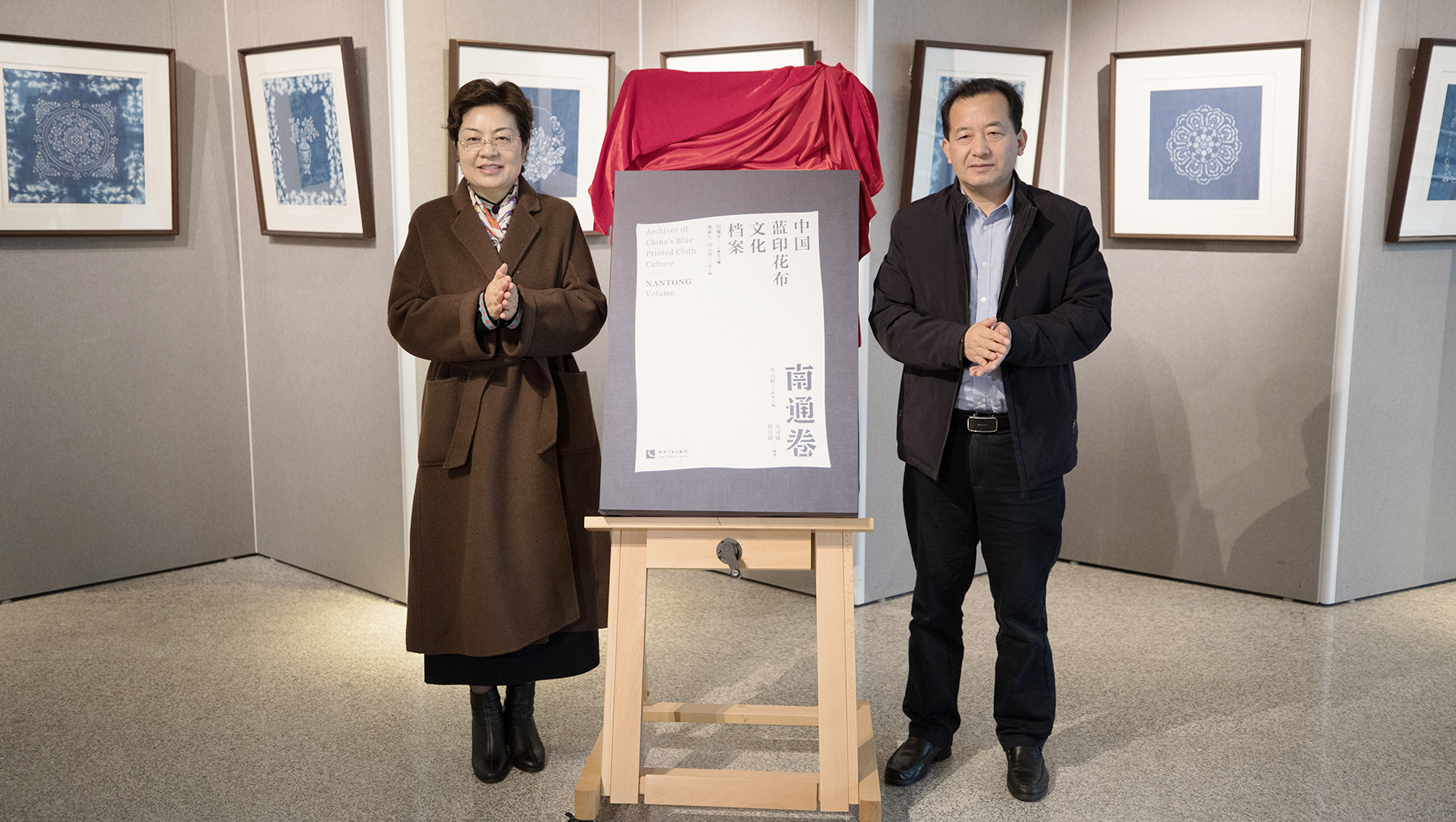 王卫东、陈冬梅共同为《中国蓝印花布文化档案·南通卷》新书发布揭牌
