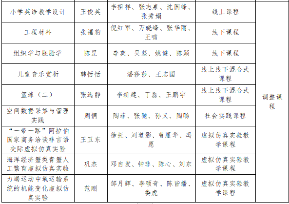 近年来,学校立足立德树人的根本任务,推进信息技术与教育教学深度融合,坚持课程是人才培养的核心要素,高度重视一流本科课程建设与应用工作。在本批一流课程申报中,教务处积极动员各学院、各课程团队开展课程建设与申报,通过多轮一流本科课程建设专题培训及交流、指导申报材料等环节,引导和鼓励教师不断优化课程教学模式,开展教学改革。今后,学校将以一流课程建设标准为引领,不断优化课程体系,持续推进课程改革,充分发挥一流课程的示范引领作用,进一步加大一流课程建设力度,持续推进课程改革创新,切实提高人才培养质量。