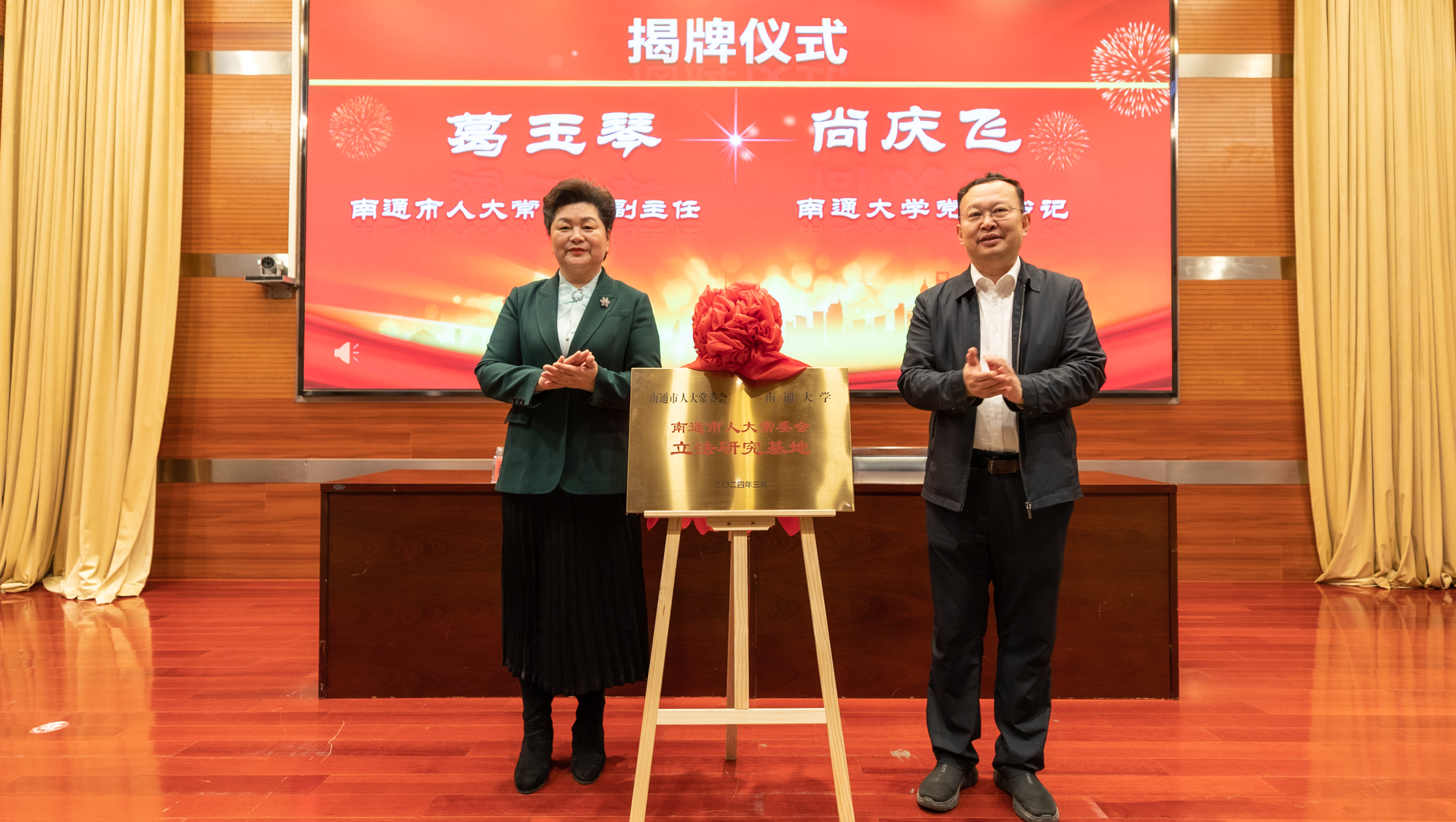 尚庆飞、葛玉琴共同为“南通市人大常委会立法研究基地”揭牌