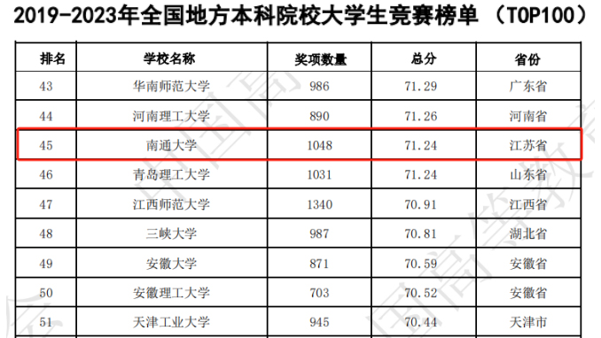 3月22日,中国高等教育学会发布《2023全国普通高校大学生竞赛分析报告》。mg冰球官网在“2019-2023年全国地方本科院校大学生竞赛榜单(TOP100)”中位列第45名,在“2019-2023年全国普通高校大学生竞赛榜单(本科,TOP300)”中位列第89名。