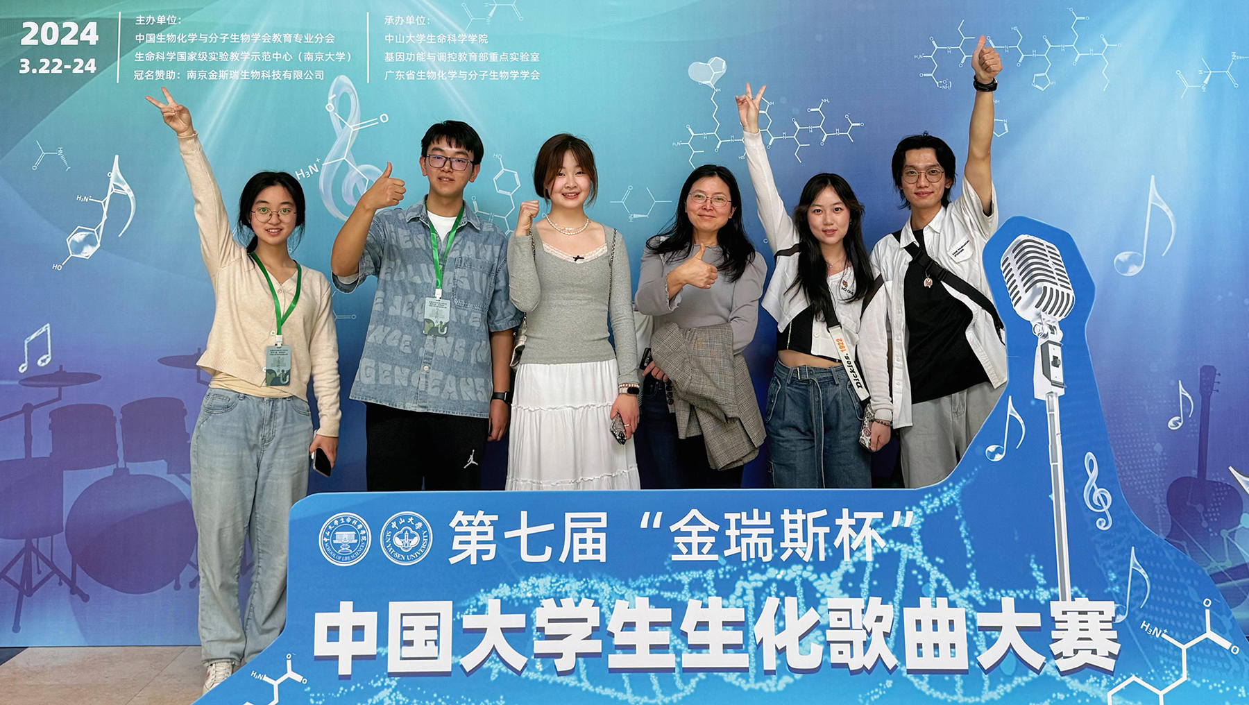 3月22—24日,全国大学生第七届“金斯瑞杯”中国大学生生化歌曲大赛在中山大学举行。mg冰球官网医学院2022级口腔医学专业温雪阳,临床医学专业陈音其、常博文、许诺、周丽荣的作品《生命的彩虹》(指导老师:顾建兰、周谊芬、范雪洁)荣获三等奖。