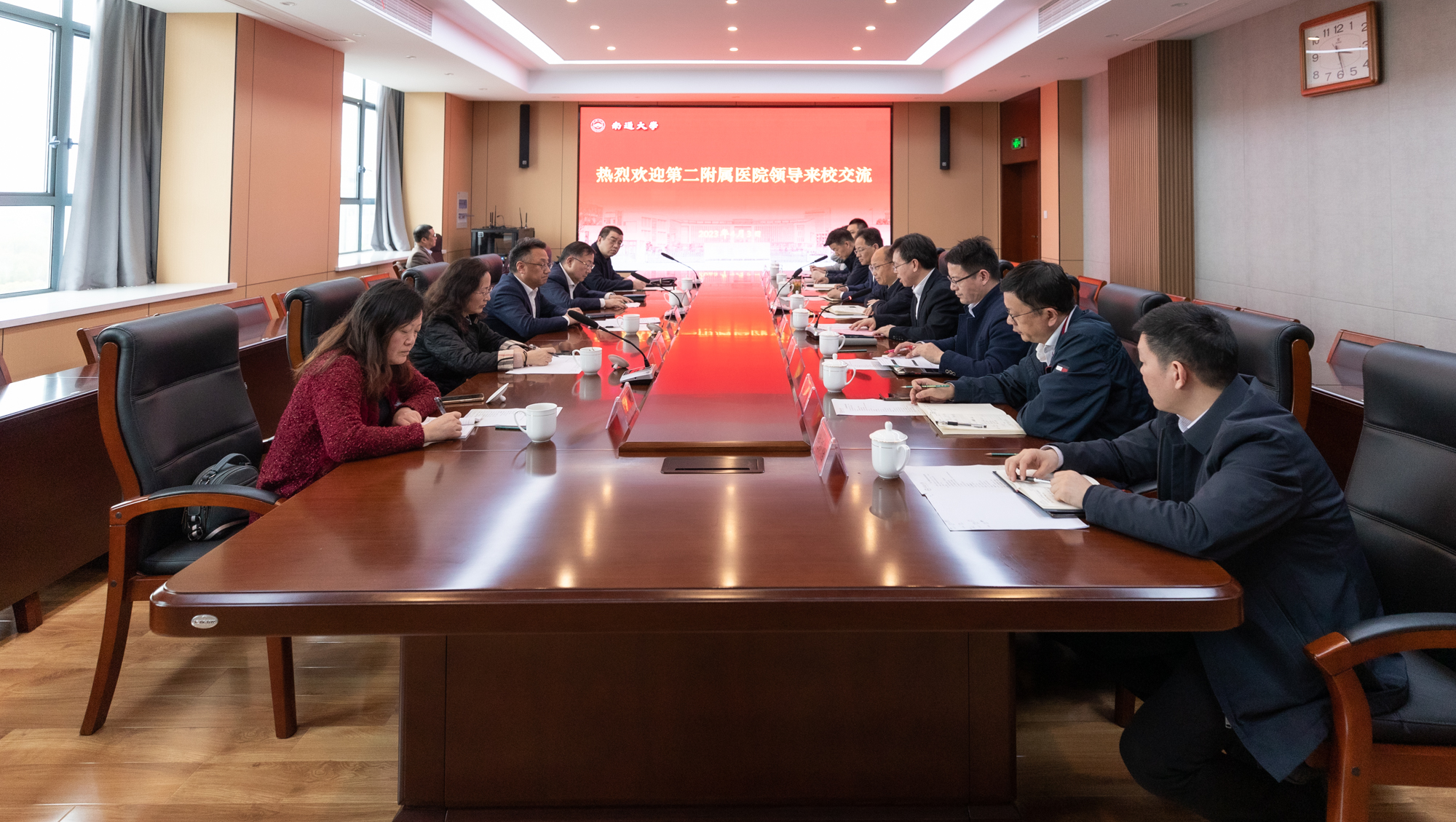 4月3日下午,第二附属医院(南通市第一人民医院)党委书记卢红建、院长薛蔚一行来校交流。校党委副书记、校长杨宇民,校党委常委、副校长施佺出席交流会。