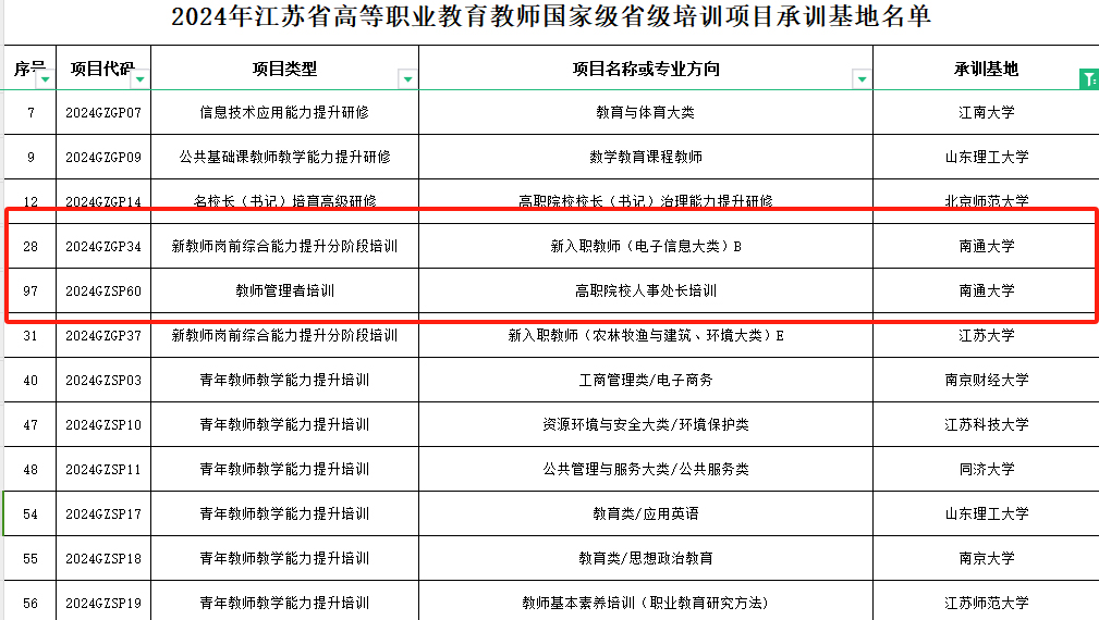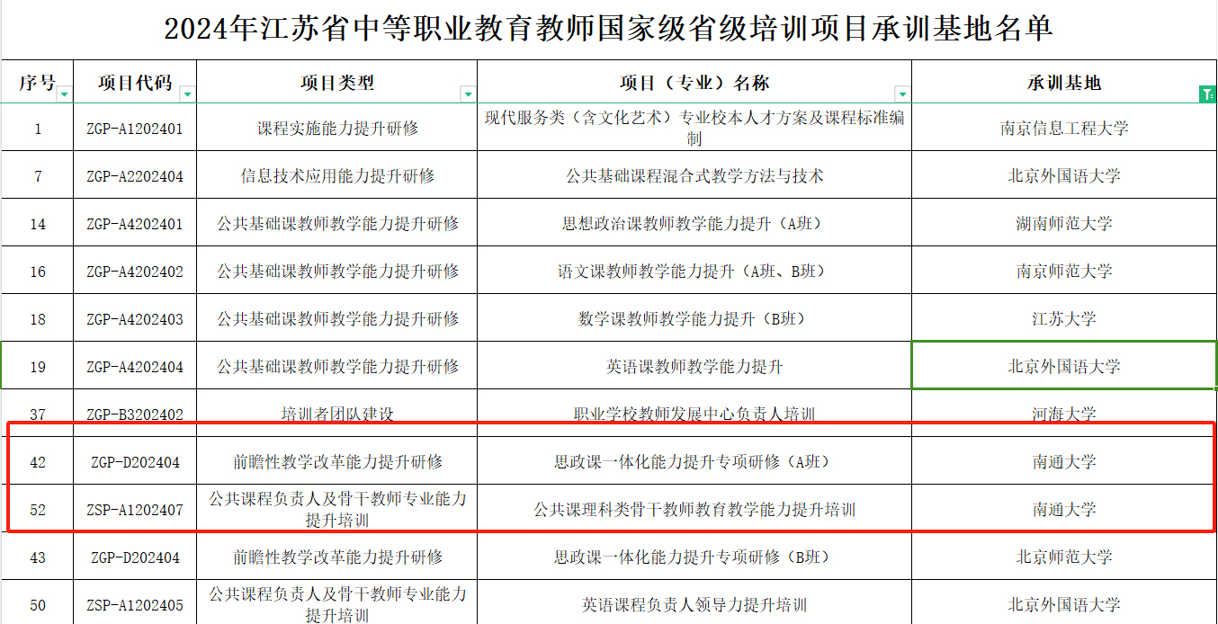 近日,江苏省教育厅公布了2024年江苏省职业院校教师素质提高计划国家级省级培训项目承训单位名单,mg冰球官网被遴选为本年度培训项目承训基地。其中mg冰球官网申报的《新教师岗前综合能力提升分阶段培训(电子信息类)B》《思政课一体化能力提升专项研修(A班)》为本年度国家级培训项目,《高职院校人事处长培训》《公共课理科类骨干教师教育教学能力提升培训》为本年度省级培训项目,培训经费总额为253.5万元。