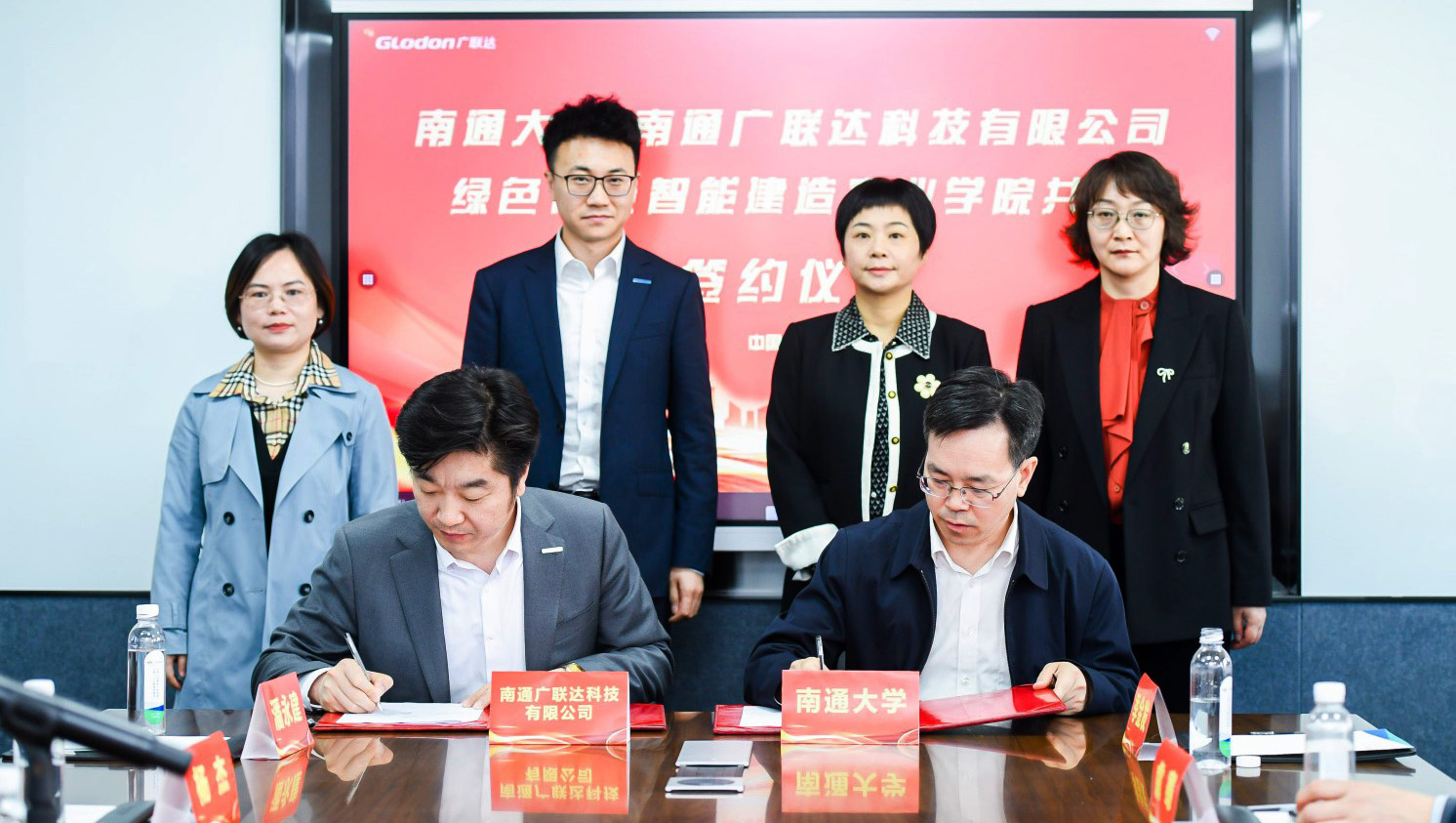 4月18日上午,mg冰球官网与南通广联达科技有限公司举行共建mg冰球突破试玩绿色低碳智能建造产业学院签约仪式。校党委常委、副校长施佺与广联达科技股份有限公司副总裁钱锋代表双方签订共建协议。