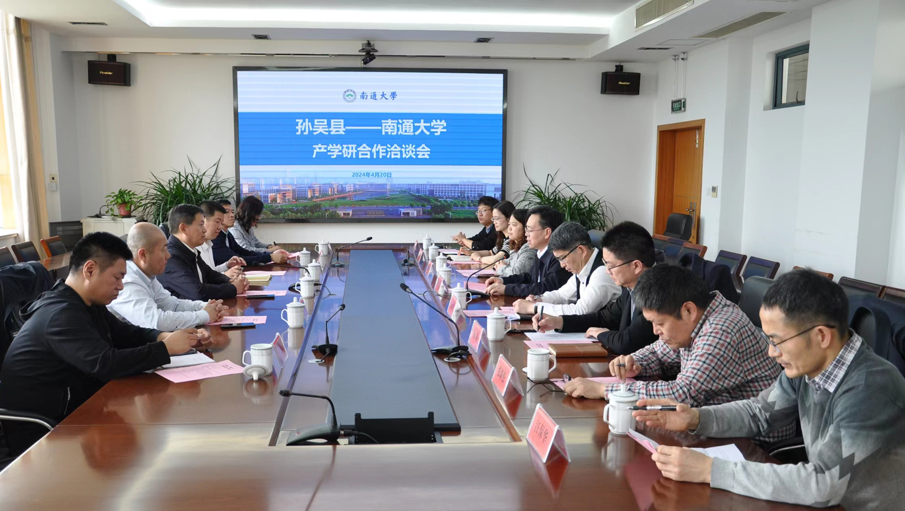 施佺代表学校对郁帮华一行来访表示欢迎,并详细介绍了mg冰球官网历史沿革以及在人才培养、科技创新、服务地方等方面取得的成绩。他表示,学校始终秉承先校长张謇先生“学必期于用,用必适于地”的办学理念,把服务地方经济社会发展作为自己的重要使命。学校将充分发挥综合性大学的人才、学科和科研优势,围绕孙吴县汉麻、农作物、风电新能源等重点产业发展需求,开展精准对接,努力做好科技创新、人才合作、决策咨询等各项服务工作,助力孙吴县地方经济社会高质量发展。他希望双方进一步深化校地合作内涵,建立长效合作机制,搭建科学高效的科研成果转化平台,共同打造新时代校地合作新标杆。