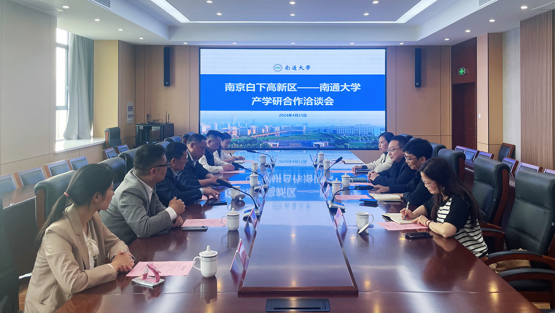 4月23日下午,南京白下高新区党工委书记王洛锋一行来校调研交流。校党委常委、副校长华亮接待了来宾。