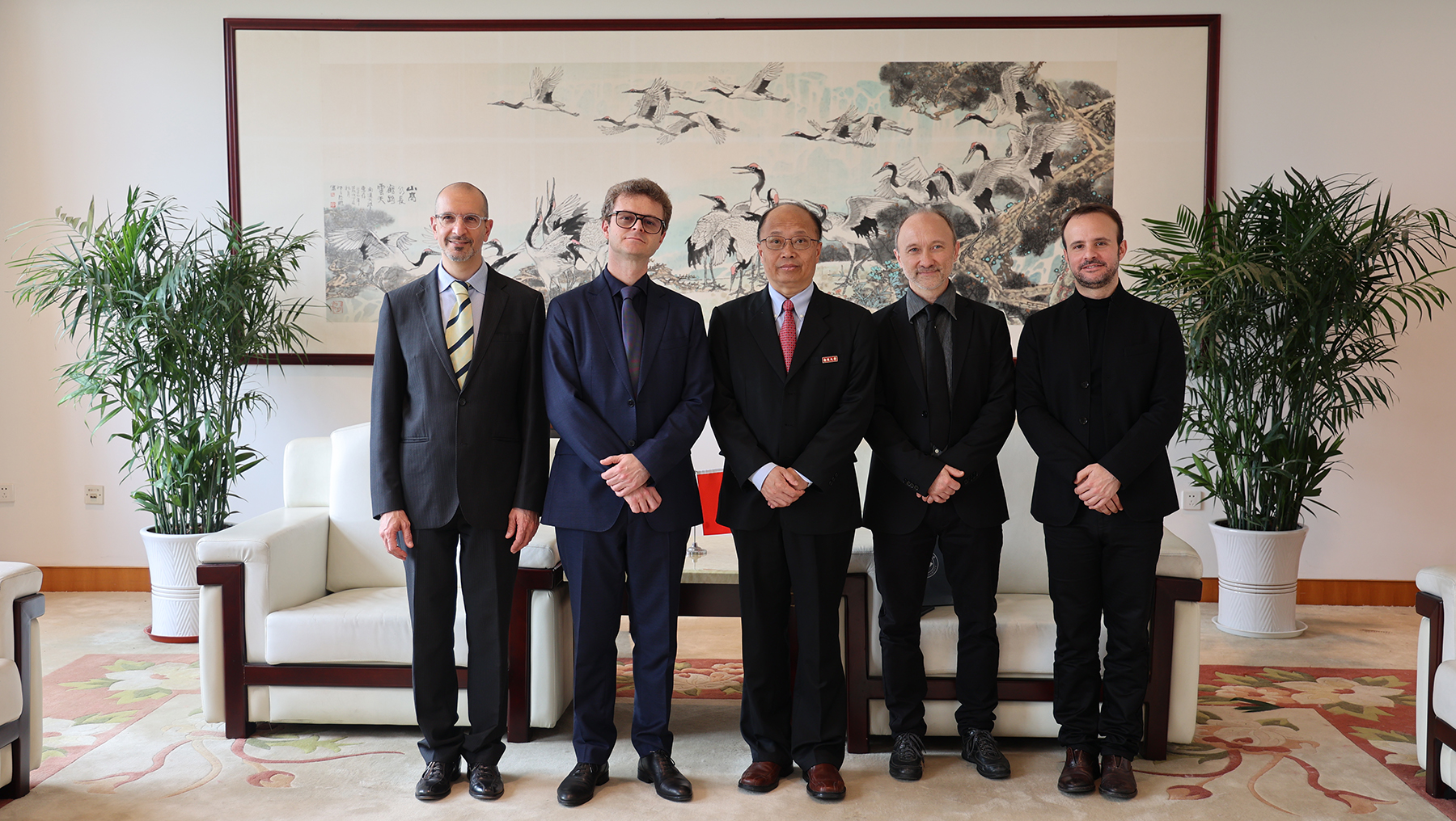 5月6日,意大利锡耶纳“R.弗朗齐”音乐学院校长Matteo Fossi一行访问mg冰球官网。校党委副书记、校长杨宇民会见了来宾。