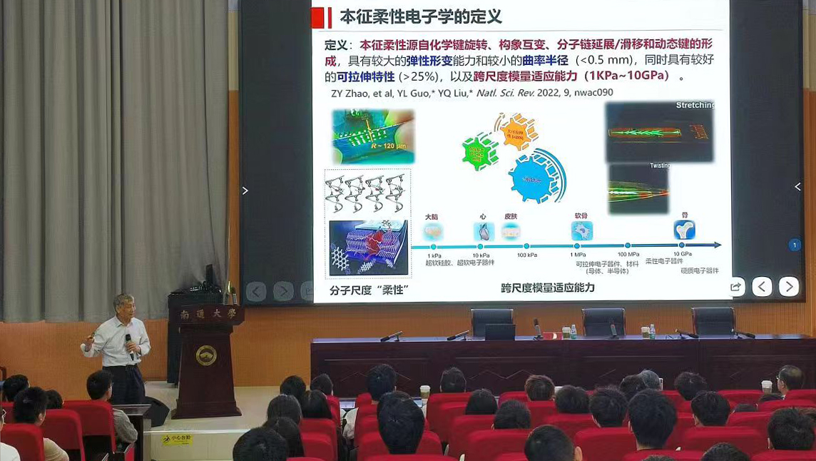 刘云圻院士在题为《本征柔性:材料与器件》的学术报告中详细介绍了其团队关于制备高迁移率高分子材料的研究思路、研究内容和成果,特别介绍了在溶液法加工技术和功能器件方面取得的最新进展,并对“本征柔性”概念的提出和意义做了明晰讲解。报告内容丰富、条理清晰、紧贴前沿热点,引起与会师生的兴趣和关注。刘云圻院士与mg冰球官网师生就相关研究问题进行了深入交流讨论,认真倾听并详细解答了师生们提出的问题,勉励在场师生对科学研究要沉下心来、面向学科前沿和面向应用开展研究工作。