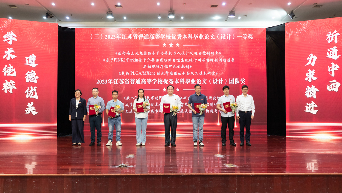 校领导为2023年江苏省普通高等学校优秀本科毕业论文(设计)一等奖和优秀团队奖获奖者颁奖