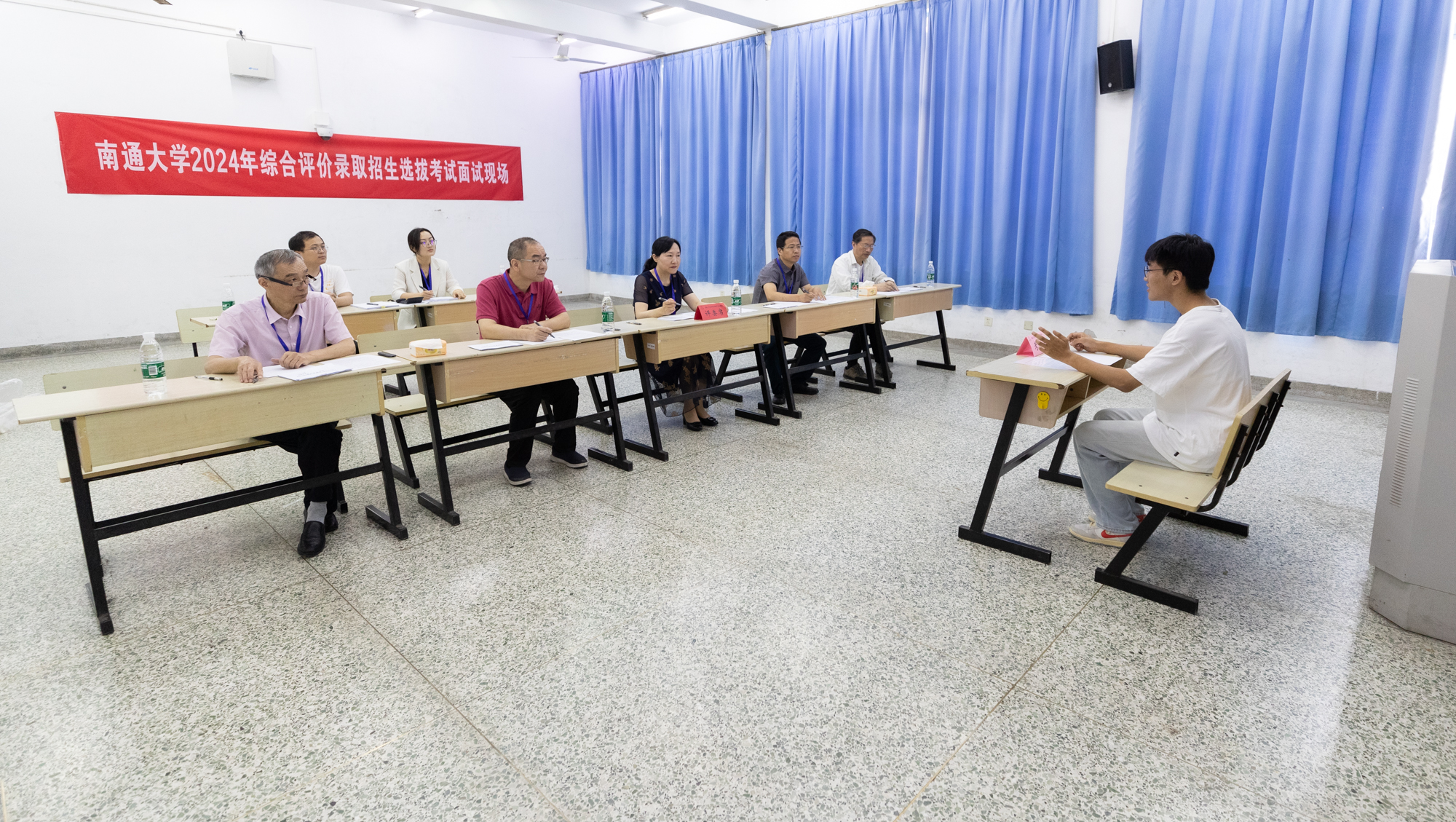 mg冰球官网坚持以考生为本的工作原则,着眼于考务工作细节处,为考生提供了周到细致的候考服务,赢得了广大考生及家长的一致好评。从校门口的横幅、指示牌、引导人员,到候考室里的饮用水、冰块、纸巾、面包……每一处精心的安排,都让考生在炎炎夏日中感受到一丝凉爽,一位考生参加完考试后说:“这次的考试经历让我感受到通大的人文关怀和文化底蕴,更加坚定了我通大求学的决心。”此次考试从接收考生报名、材料审核到组织面试工作,前后共历时一个多月,组织部门和工作人员多次就细节进行研讨和推演,确保了面试工作的顺利进行。共有500余名专家和教职员工参与了考试审核、面试、组织和保障工作。考试各环节规范、高效,保障服务工作井然有序。
