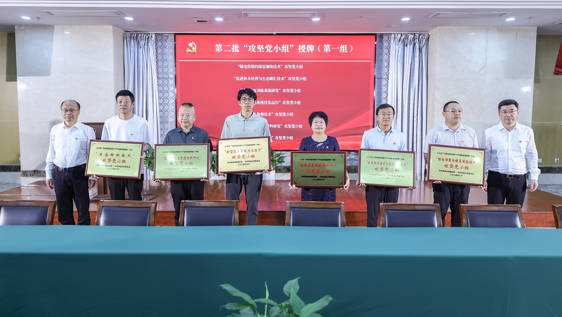会上,陈鹏军、杨宇民为“生态纺织技术”等14个攻坚党小组授牌。吉明明、吴如高为12名集成电路产业链教学实践基地兼职教授发放聘书。陶锋、校服务地方工作处处长高江宁为9个与链上企业共建的产学研基地授牌。12项技术攻关项目也在会上进行了集中签约。