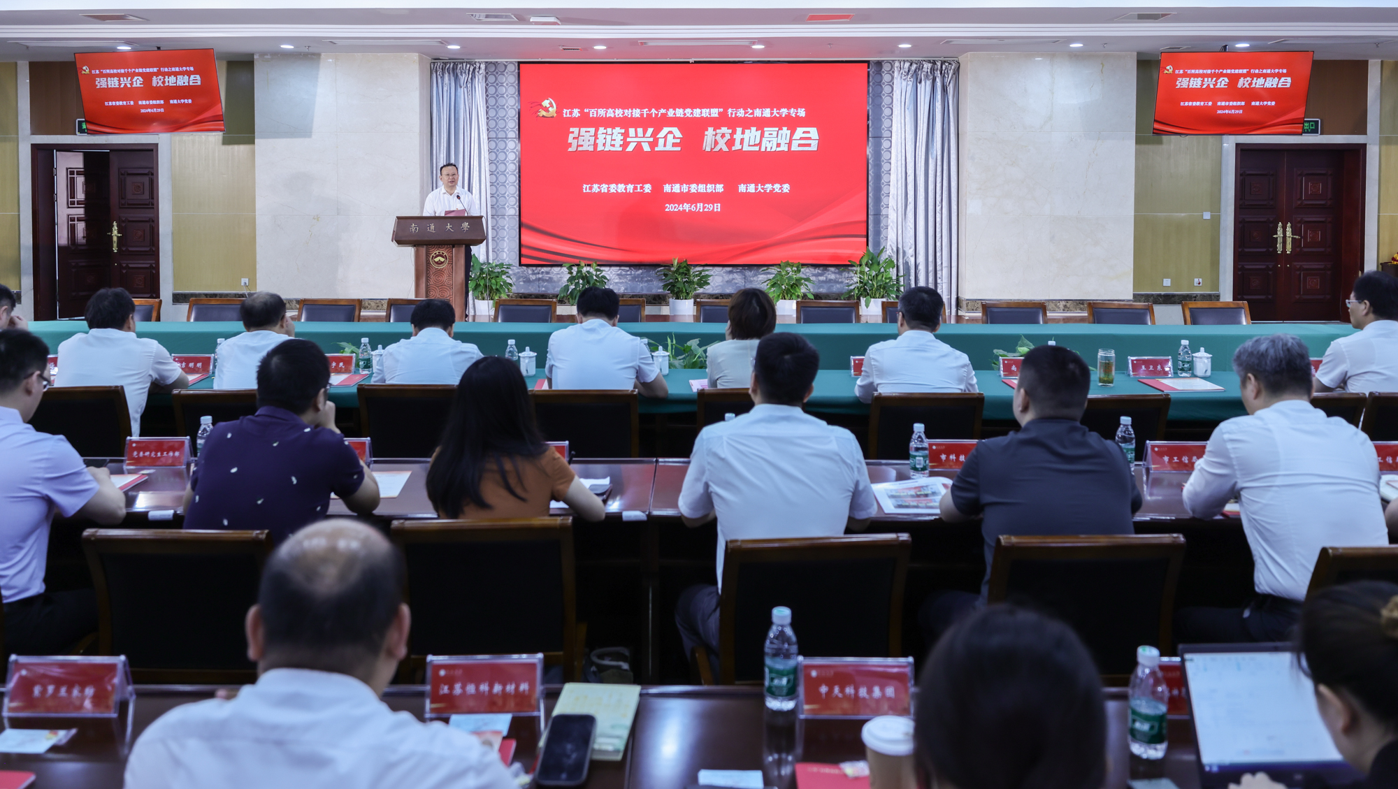江苏省教育厅相关处室领导,南通市发改委、科技局、工信局、商务局、市场监管局相关负责同志,mg冰球官网各二级党组织、相关职能部门负责同志,产业链党委相关同志、链上企业代表、人才代表等130余人参加活动。