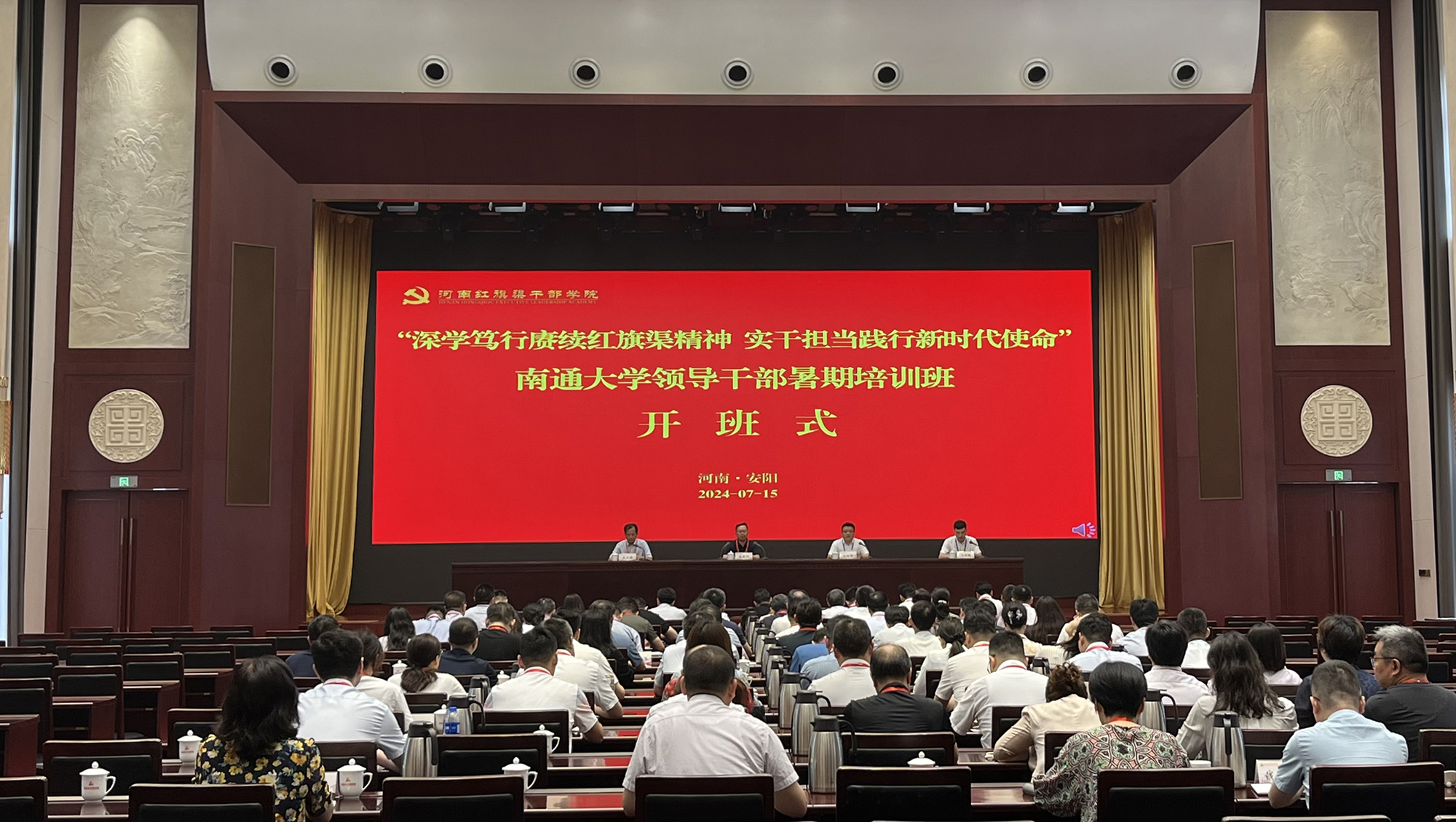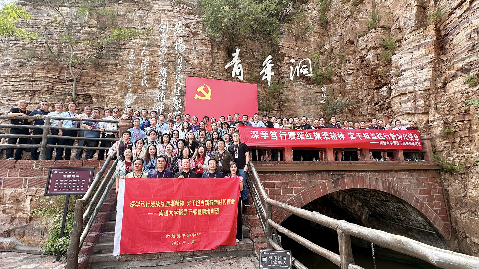 7月14日—18日,mg冰球官网在河南红旗渠干部学院举办“深学笃行赓续红旗渠精神 实干担当践行新时代使命”2024年度领导干部暑期培训班。校党委书记尚庆飞在开班式上讲话。红旗渠干部学院党委委员、副院长石瑞峰出席开班式。全体在通校领导、党委常委参加培训班。