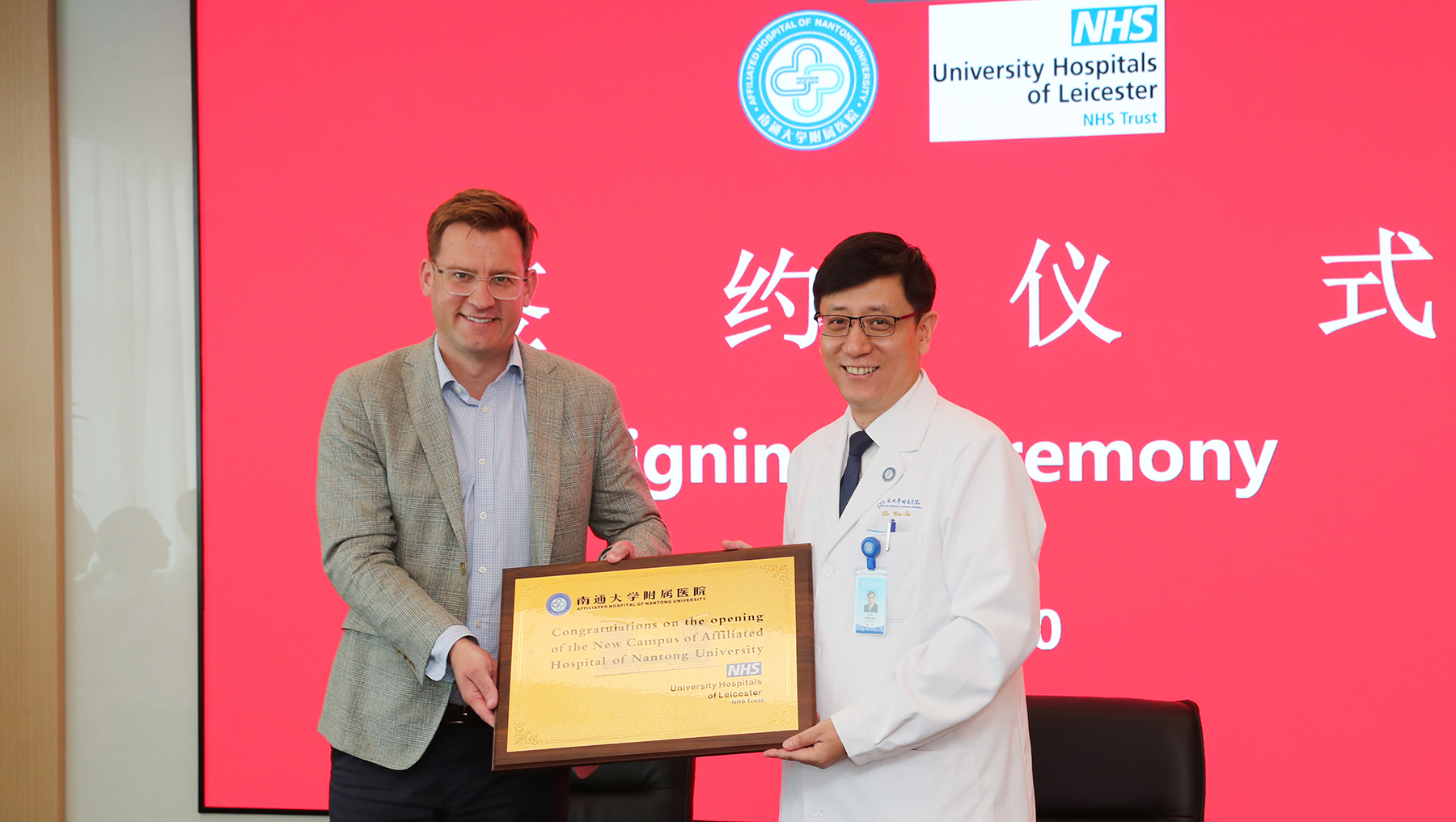 又讯 7月20日,附属医院与英国莱斯特大学医院举行签约交流会。校党委常委、副校长、附属医院党委书记施炜,莱斯特大学医院首席执行官Richard Henry Mitchell代表双方签约。这是继2017年签署全面合作备忘录后,双方友好合作关系的进一步拓展和深化。