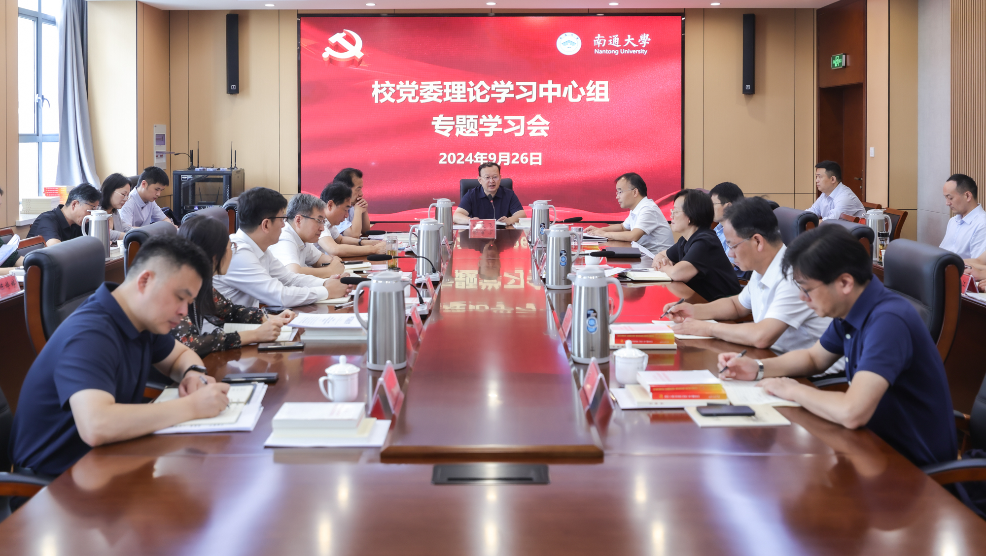 9月26日上午,mg冰球官网党委理论学习中心组举行专题学习会,学习贯彻党的二十届三中全会精神和全国教育大会精神,跟进学习习近平同志《论教育》,学习传达《中共江苏省委关于贯彻落实党的二十届三中全会精神,进一步全面深化改革、在推进中国式现代化中走在前做示范的决定》。校党委书记尚庆飞主持学习会。