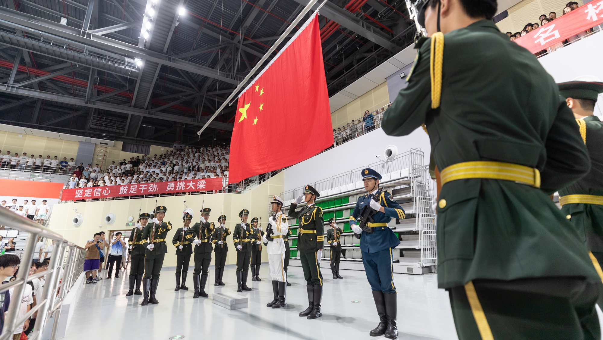 mg冰球官网举行庆祝中华人民共和国成立75周年升国旗仪式暨2024级新生开学第一课