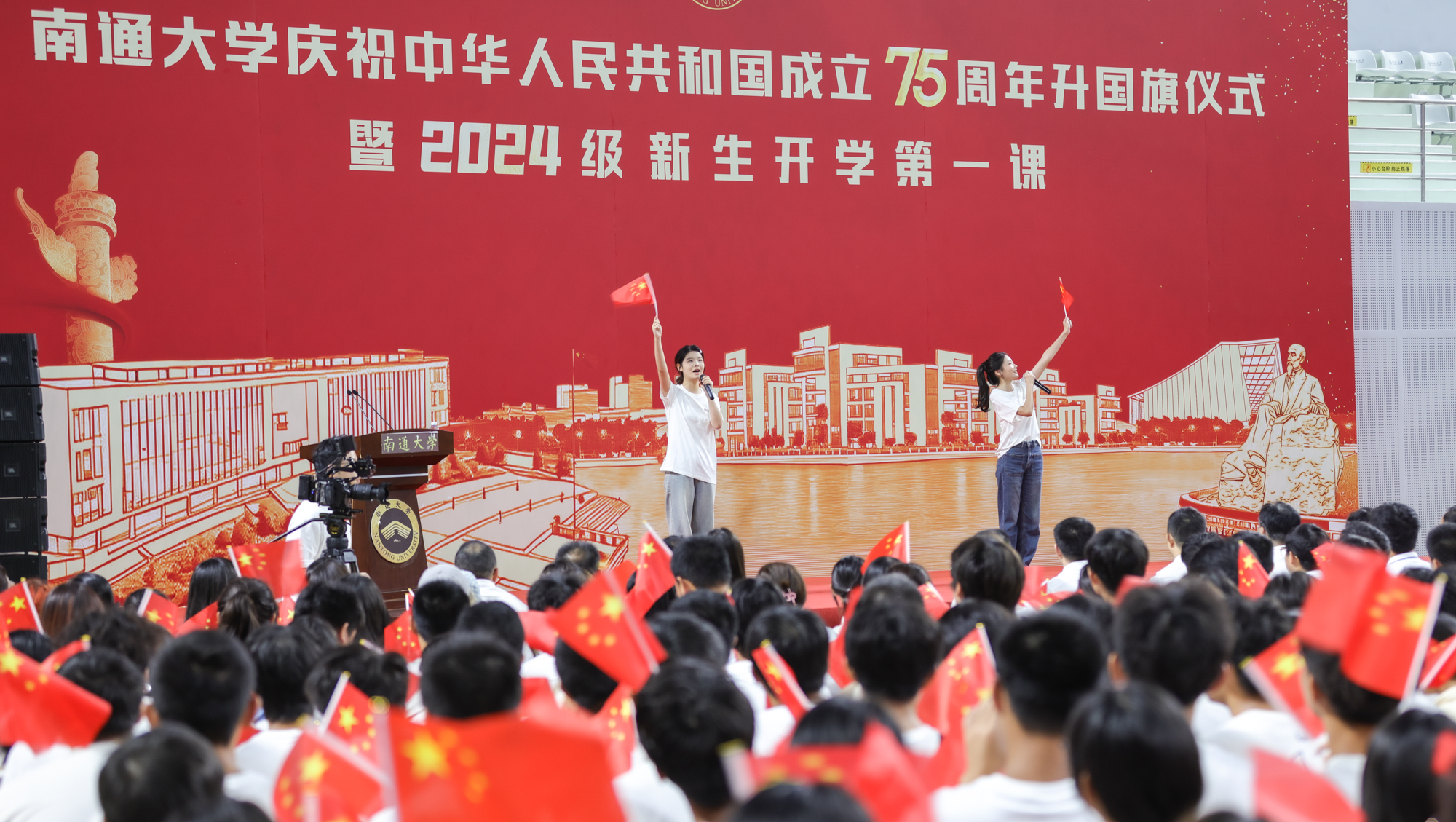 吉明明指出,在中华人民共和国成立75年周年之际,在全校上下深入学习贯彻党的二十届三中全会精神、全力推动“名城名校”融合发展战略实施、翘首企盼学校合并组建20周年系列活动的重要时期,举行升国旗仪式暨开学第一课,既是对伟大祖国表达崇敬之情和美好祝愿,也是对全体2024级研究生、本科生新生同学的热烈欢迎和诚挚祝福。他希望同学们牢记寄语与教诲,站在充满希望的新起点上,珍惜“通大人”的身份,自觉投身强国建设、民族复兴伟业,在实现中华民族伟大复兴的新征程上勇往直前,在推进中国式现代化新征程中展现新作为。