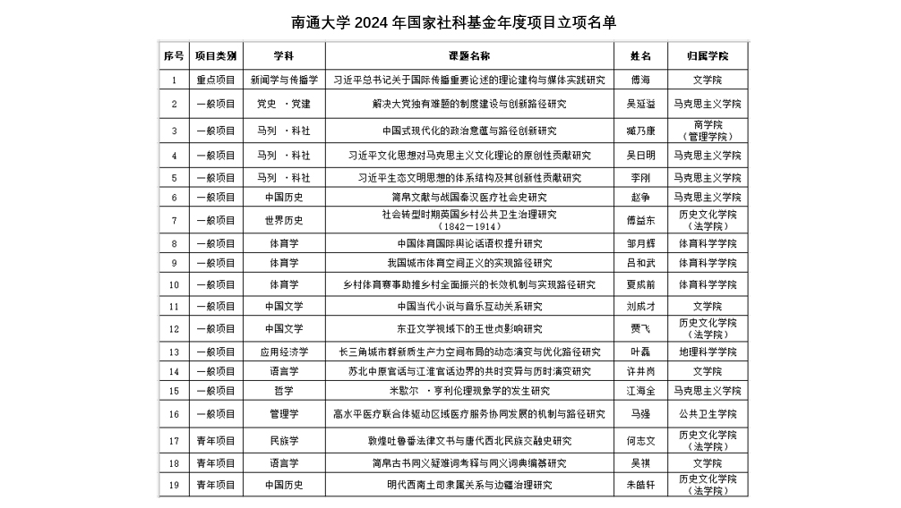 10月15日,全国哲学社会科学工作办公室公布2024年度国家社会科学基金年度项目立项名单。mg冰球官网共有19个项目获得立项,立项率超过23%,立项数较去年同期增长90%,位列江苏省第6位、全国第83位,省内仅次于南京大学、南京师范大学、苏州大学、东南大学等高校,创历史最好成绩。