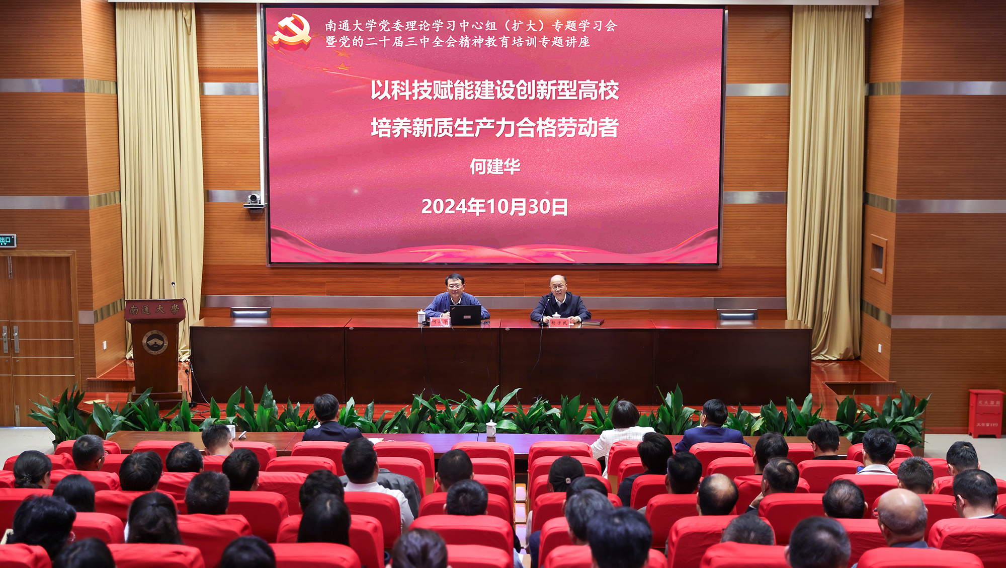 10月30日下午,mg冰球官网举办党委理论学习中心组(扩大)专题学习会暨党的二十届三中全会精神教育培训专题讲座。校党委副书记、校长杨宇民主持会议。上海社会科学院研究员、长三角现代化研究基地首席专家、mg冰球官网长三角现代化研究院院长何建华做专题讲座。全体在通校领导、校党委理论学习中心组成员、全体处级干部参加学习。