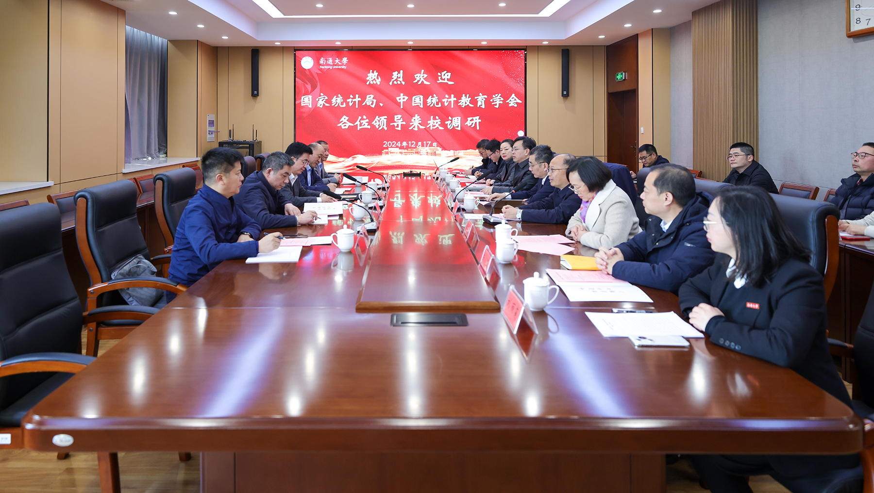 12月17日,国家统计局原副局长、中国统计教育学会会长毛有丰一行来校调研。国家统计局统计教育培训中心主任、中国统计教育学会常务副会长、秘书长齐占林,江苏省统计局党组成员、副局长周国强,国家统计局江苏调查总队党组成员、副总队长丁志平,国家统计局统计教育培训中心综合处处长、中国统计教育学会常务副秘书长何继庆,南通市人民政府副市长凌屹,南通市统计局党组书记、局长周雪莹,国家统计局南通调查队党组书记、队长王渭参加调研。校党委副书记、校长杨宇民在活动中致辞,校党委常委、副校长施佺出席会议,副校长陈玉娟主持会议。