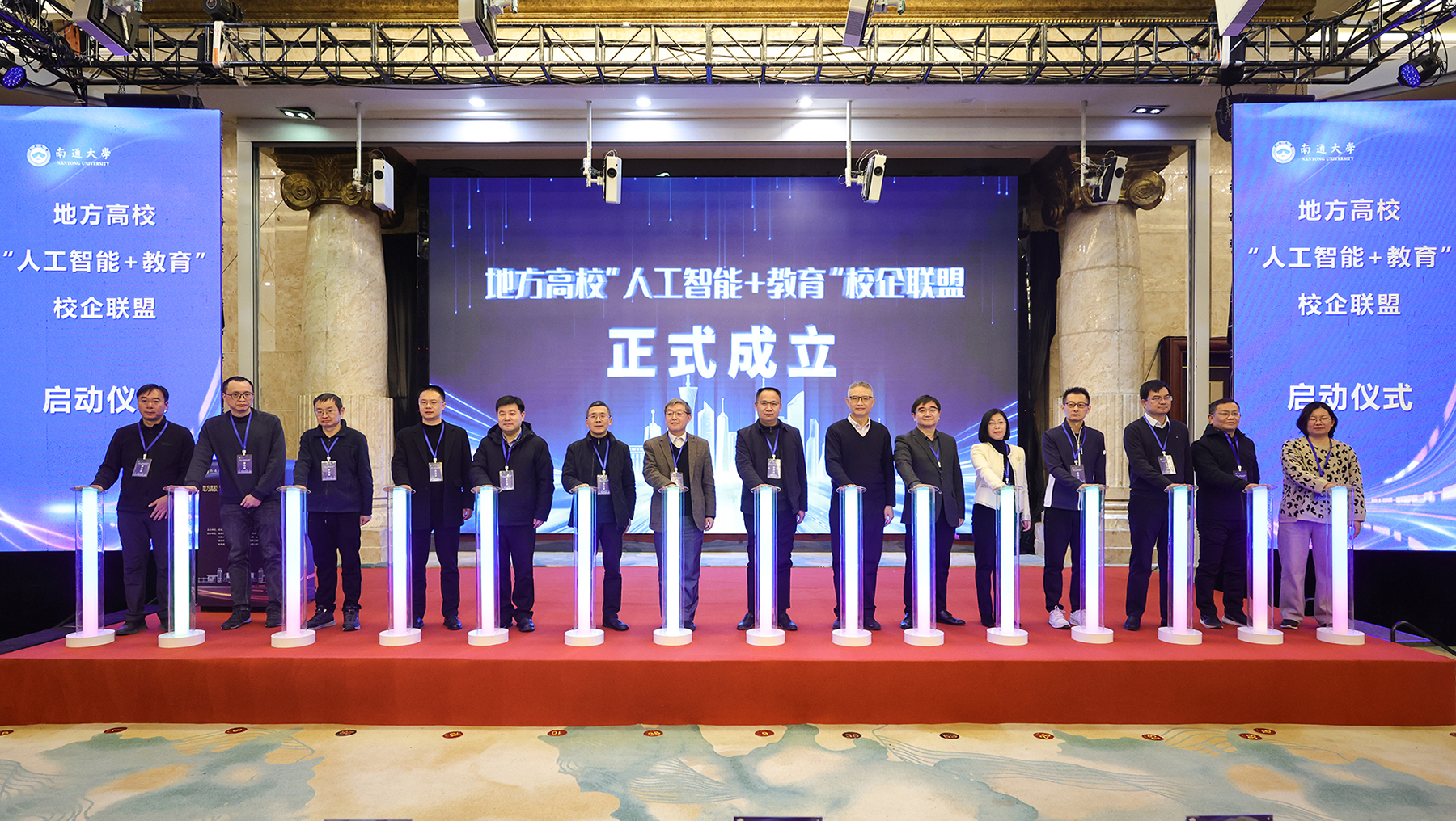 会上,mg冰球突破试玩、南京财经大学、苏州大学、江苏大学、南京师范大学、南京邮电大学、扬州大学、南京医科大学、南京工程学院、金陵科技学院、南京警察学院、常州大学、江苏海洋大学、高等教育出版社、科大讯飞股份有限公司等15家成员单位代表共同按下校企联盟启动键。作为联盟理事长,徐骏表示,联盟将通过校企联动、发布教研课题、组织培训活动与研讨会等多种形式,致力于确立通识人工智能素养建设规范、共建共享“人工智能+专业”示范课程体系、打造人工智能应用示范案例资源库、构建共建共享长效机制、开发面向地方应用型高校的特色教程、全面提升教师群体的人工智能素养水平。他指出,联盟的成立,将显著强化高校之间、高校与企业之间在人工智能领域的协作与交流,推动资源的优化配置与优势互补,共同促进人工智能技术的研发与应用转化,为江苏省乃至全国的人工智能产业繁荣提供更为坚实的支撑与保障,助力我国在全球人工智能竞争浪潮中抢占先机,书写教育与科技协同发展的崭新篇章。