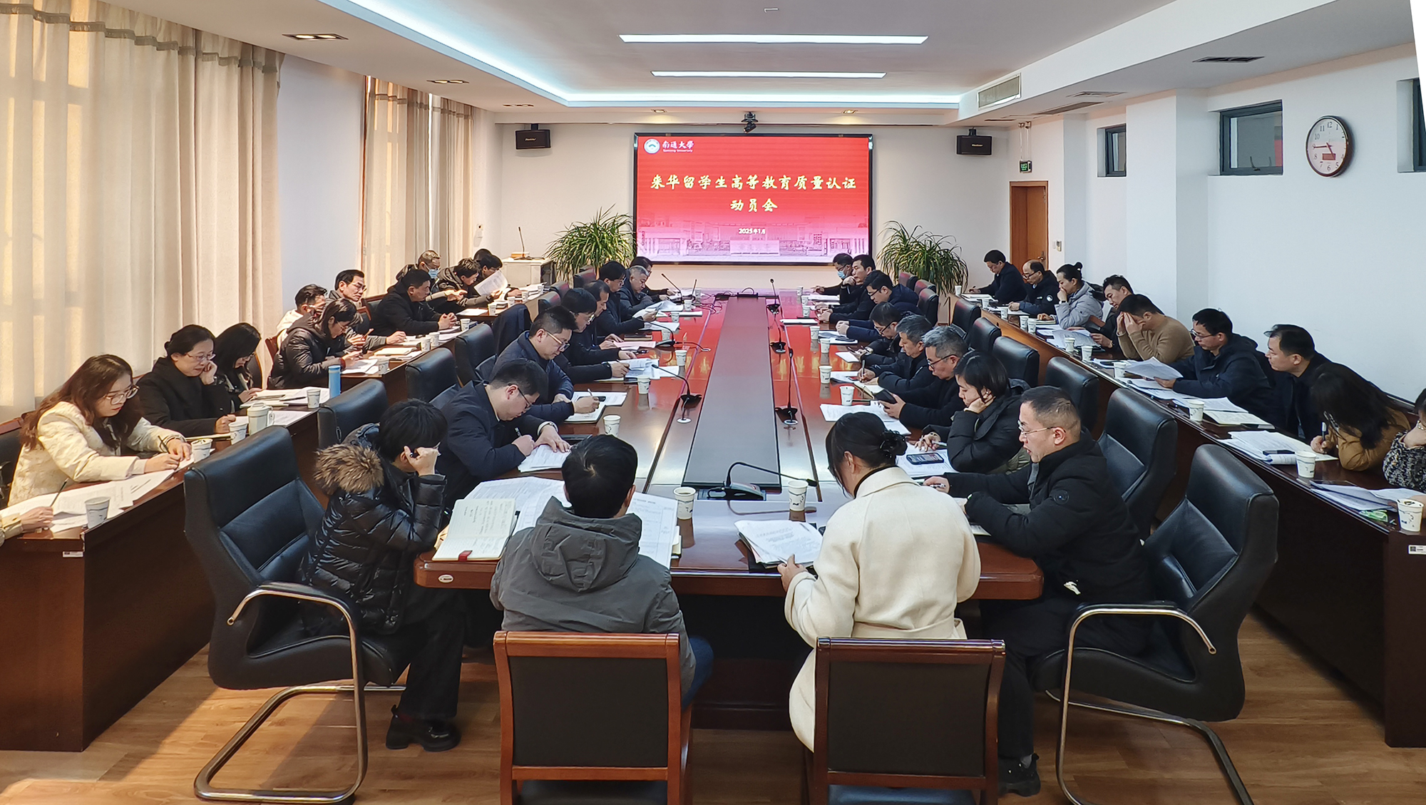 为深入贯彻落实教育部《来华留学生高等教育质量规范(试行)》等文件精神,推进mg冰球官网来华留学质量认证工作,1月10日下午,mg冰球官网召开来华留学生高等教育质量认证工作动员会,全面部署质量认证工作。校党委副书记王卫东作动员讲话。