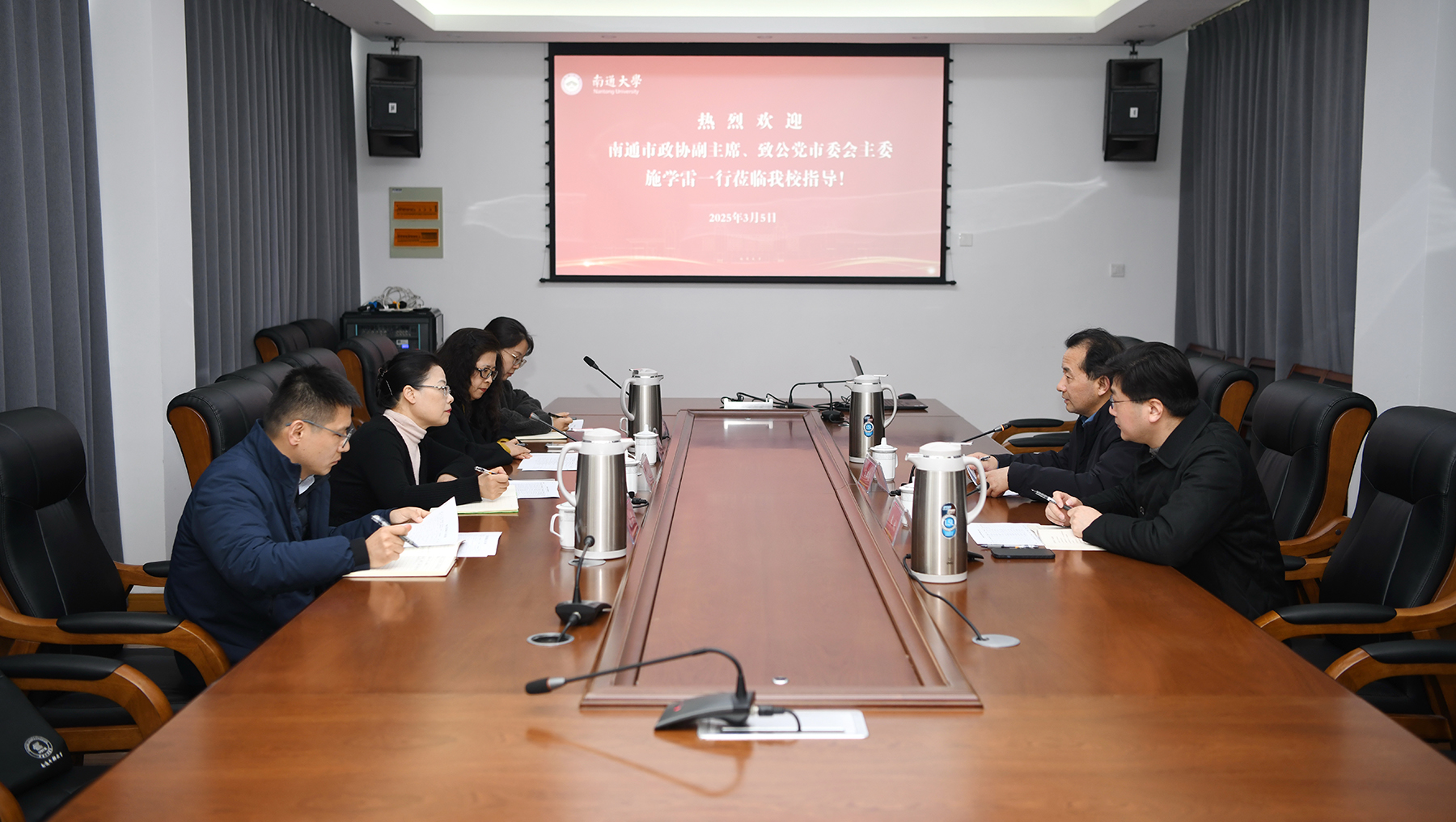 3月5日,南通市政协副主席、致公党南通市委会主委施学雷一行来校交流。校党委副书记王卫东,校党委常委、统战部部长朱城出席座谈会。