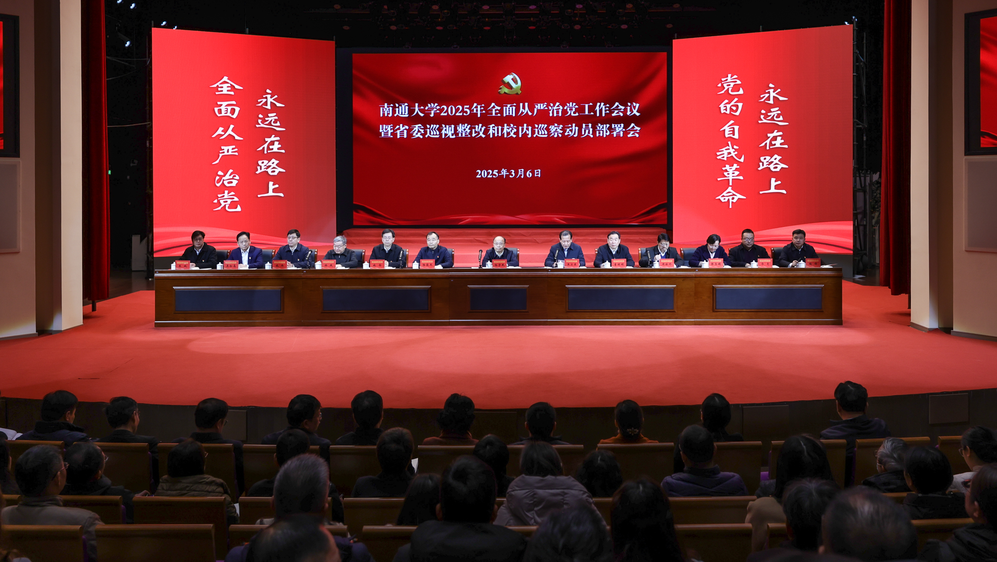 3月6日上午,mg冰球官网召开2025年全面从严治党工作会议暨省委巡视整改和校内巡察动员部署会,传达学习二十届中央纪委四次全会和十四届省纪委五次全会精神,安排部署2025年全面从严治党工作任务、省委巡视整改工作和第三轮校内巡察。校党委书记、校长杨宇民出席会议并讲话。校党委副书记王卫东主持会议。全体校领导、党委常委出席会议。