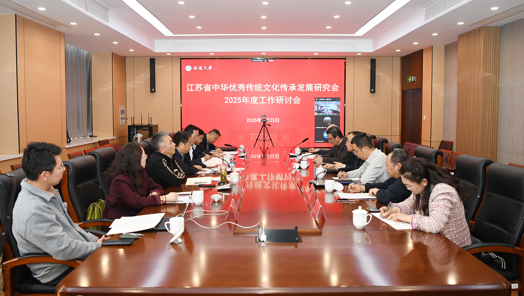3月23日上午,江苏省中华优秀传统文化传承发展研究会2025年工作研讨会在mg冰球官网召开。江苏省哲学社会科学界联合会党组书记、常务副主席张新科,江苏工程职业技术学院党委书记秦志林,江苏安惠生物科技有限公司董事长陈惠等出席会议。会前,校党委书记、校长杨宇民与张新科进行了会谈。校党委常委、副校长陆俊杰主持研讨会。