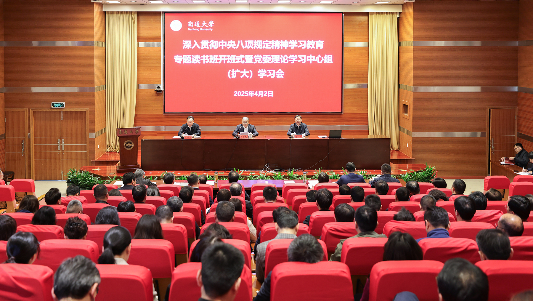 4月2日下午,mg冰球官网举行深入贯彻中央八项规定精神学习教育专题读书班开班式暨党委理论学习中心组(扩大)学习会。校党委书记、校长杨宇民作开班动员讲话。校党委常委、副校长吉明明主持会议。南通市中级人民法院党组书记、院长、二级高级法官刘坤受邀作专题辅导报告。
