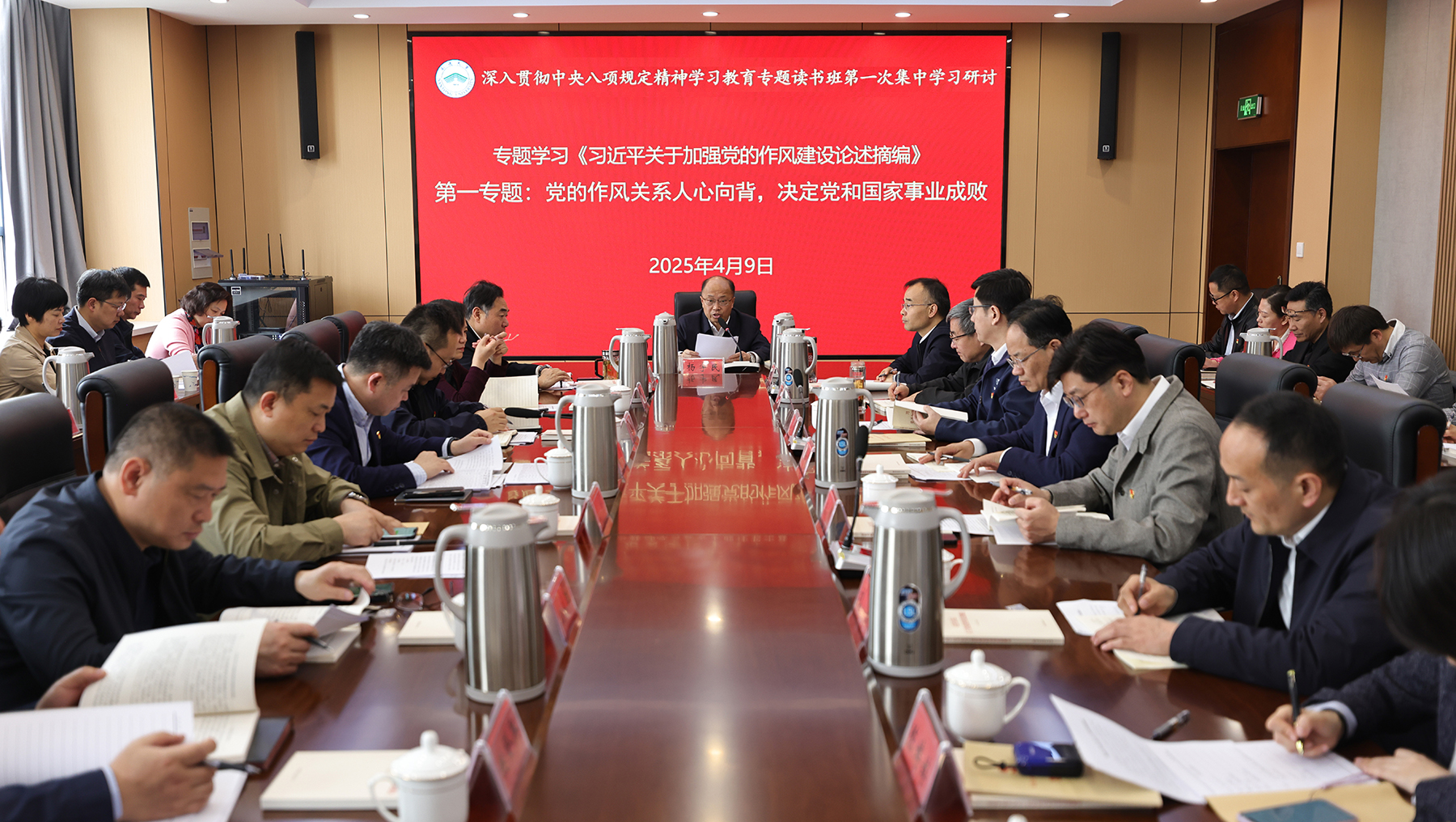 4月9日上午,mg冰球官网举行深入贯彻中央八项规定精神学习教育专题读书班第一次集中学习,学习研讨《习近平关于加强党的作风建设论述摘编》第一、二、三专题。校党委书记、校长杨宇民主持会议。全体在通校领导、校党委理论学习中心组成员、校纪委委员参加学习。