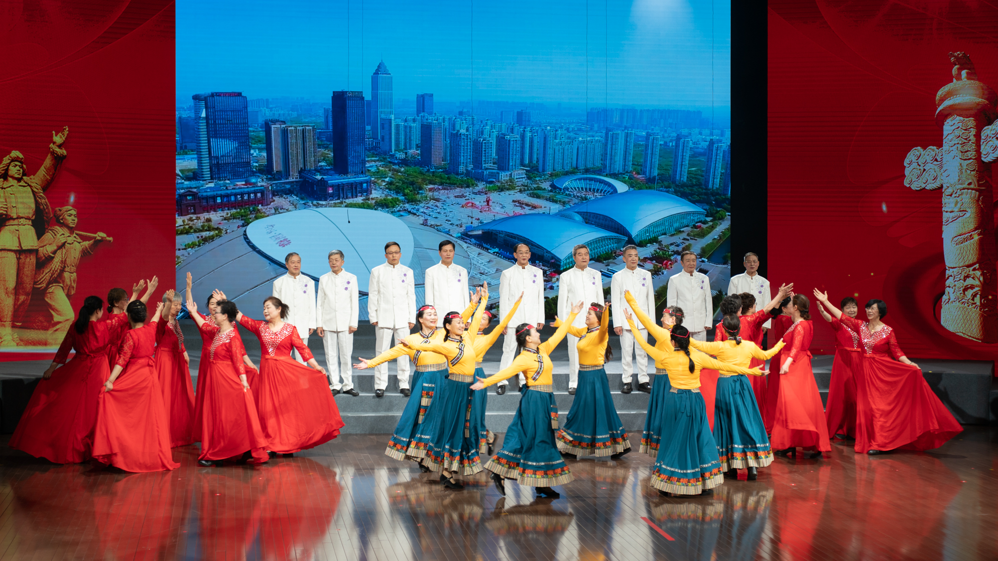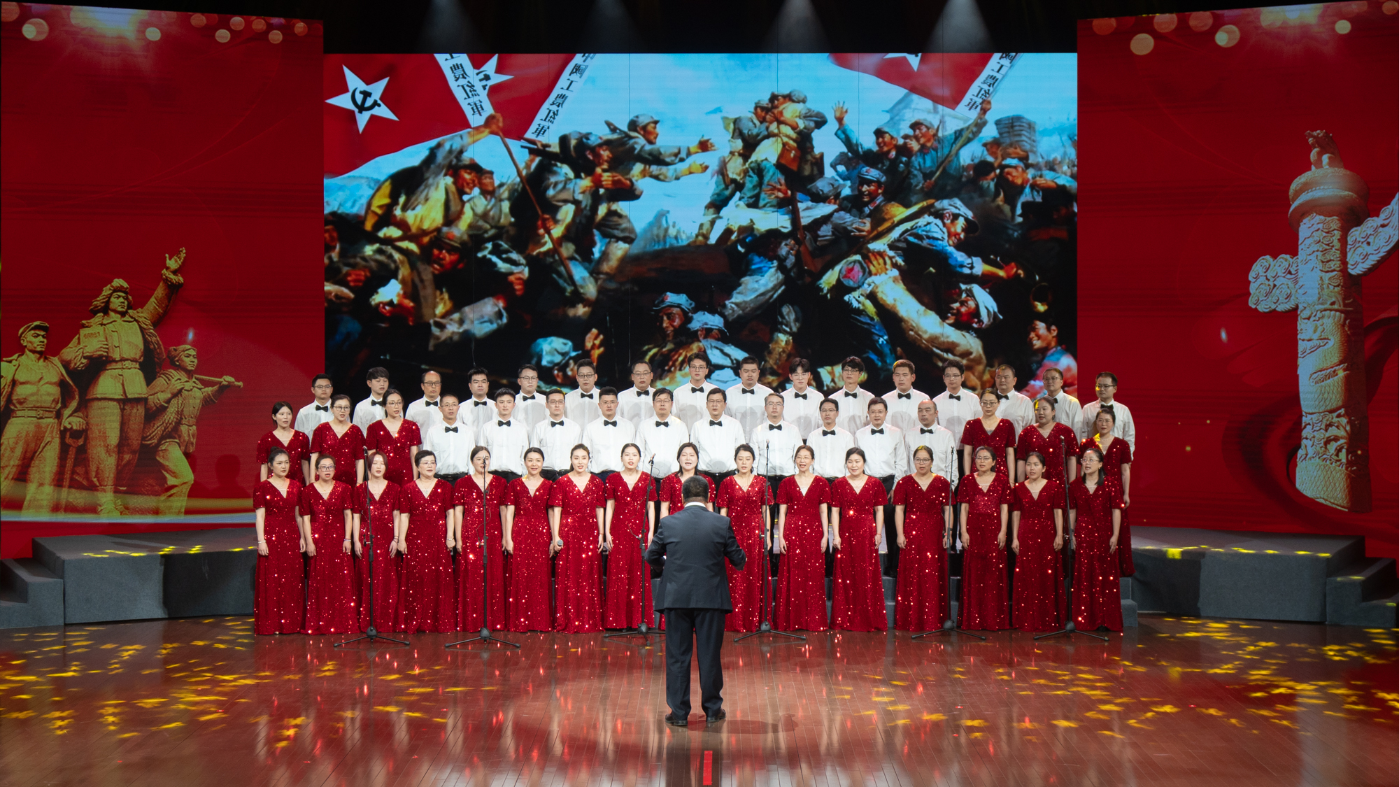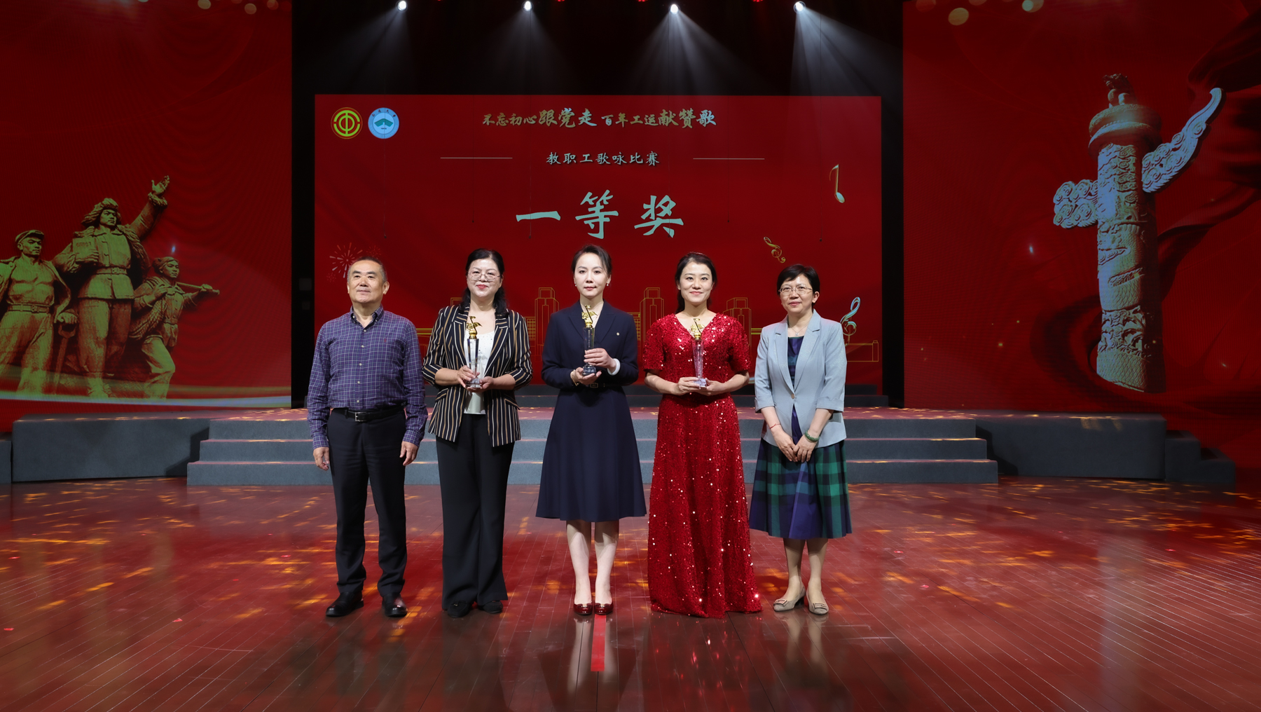百年奋斗,薪火相传;百年荣光,再启新程。雄壮嘹亮的歌声响彻艺术中心剧场,27支代表队依次登场,分别唱响《走向复兴》《奉献》《江山》《打靶归来》《精忠报国》《祖国不会忘记》《我爱你,中国》《保卫黄河》《团结就是力量》等多首经典曲目。教职工们激情洋溢、放声高歌,用音符镌刻劳动荣光,用和声礼赞奋斗征程,流露出爱党爱国的深厚感情,展现了通大教职工昂扬向上的精神风貌。离退休教职工代表、艺术学院分工会还分别带来《再唱山歌给党听》《我和我的祖国》的精彩表演。经评委打分,机关、医学院、文学院代表队获一等奖;后勤保障部、生命科学学院、人工智能与计算机学院、外国语学院、信息化中心与继续教育学院、教育科学学院代表队获二等奖;杏林学院(启东校区管委会)、电气与自动化学院、体育科学学院(支云足球学院)、化学化工学院、交通与土木工程学院、机械工程学院、商学院(管理学院)、药学院、信息科学技术学院代表队获三等奖。南通市音乐家协会主席张辉、南通市教育工会主席周淑平等评委为获奖代表队颁奖。