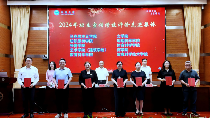 会上表彰了2024年度本科招生宣传绩效评价先进集体和先进个人、2025年度“回母校看一看——我为通大代言”寒假社会实践先进集体和先进个人,与会领导为获表彰的集体和个人颁发荣誉证书。马克思主义学院党委书记张杨乐、纺织服装学院党委书记刘其霞、艺术学院院长张卫分别就2024年招生宣传工作成效、特色亮点、创新举措以及下一阶段的目标和工作思路进行了交流。教育科学学院辅导员李成琦作为招生宣传先进个人代表交流了心得体会。