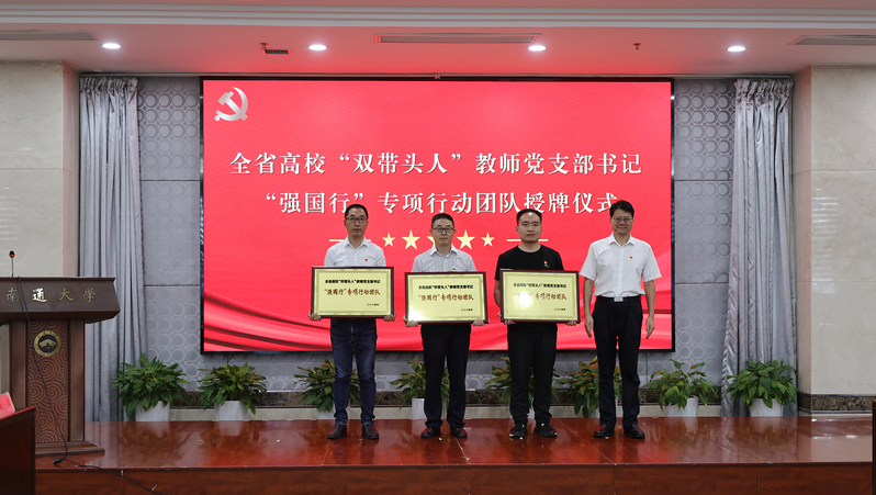 会上举行了授牌仪式。杨宇民为入选全国“强国行”专项行动团队的江苏长江经济带研究院党支部授牌。周振修为入选省级“强国行”专项行动团队的机械工程学院机械制造工程系党支部、神经再生重点实验室教工第一党支部、生命科学学院教工第二党支部授牌。吴如高为12个“攻坚党小组”授牌。