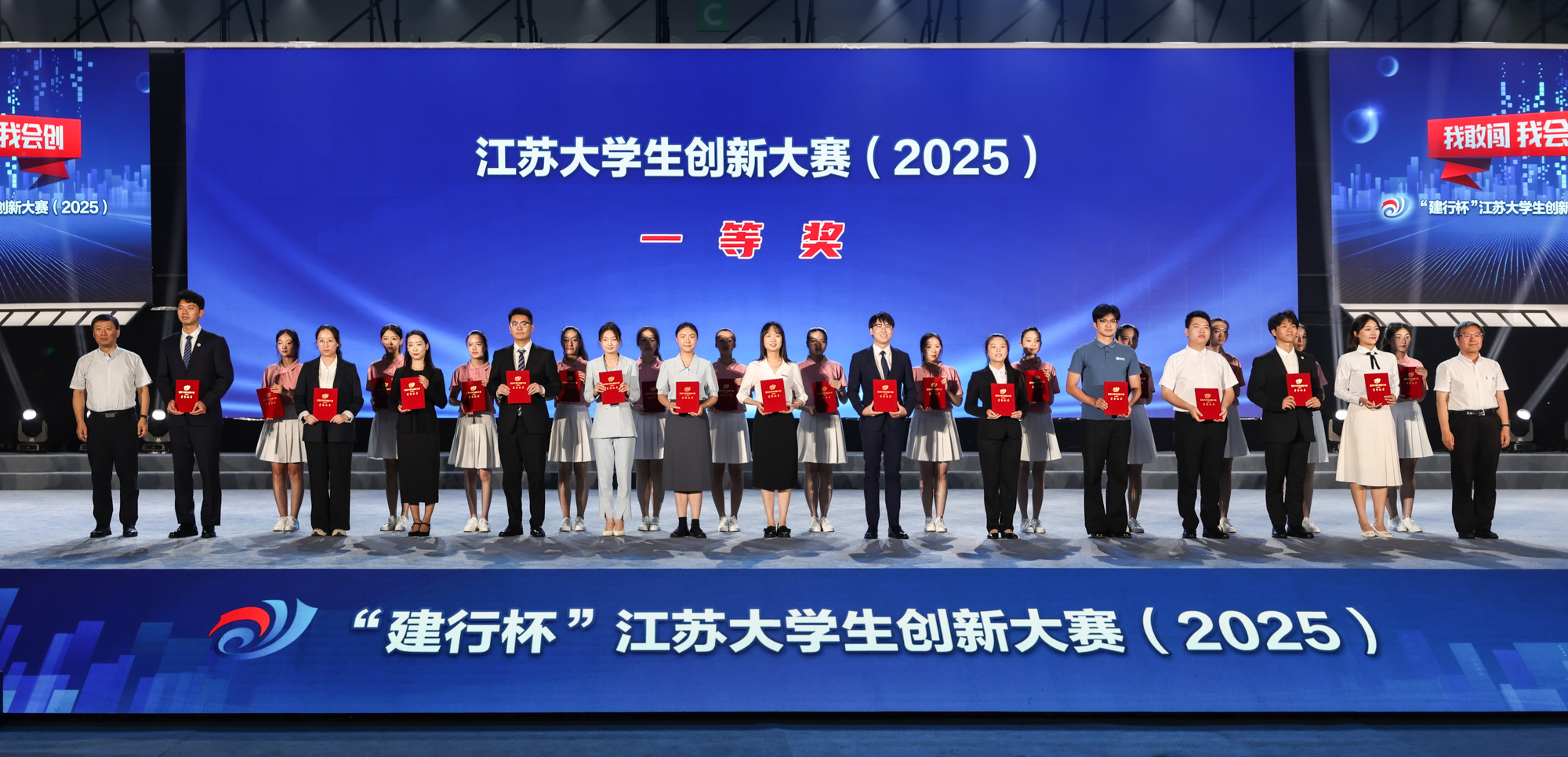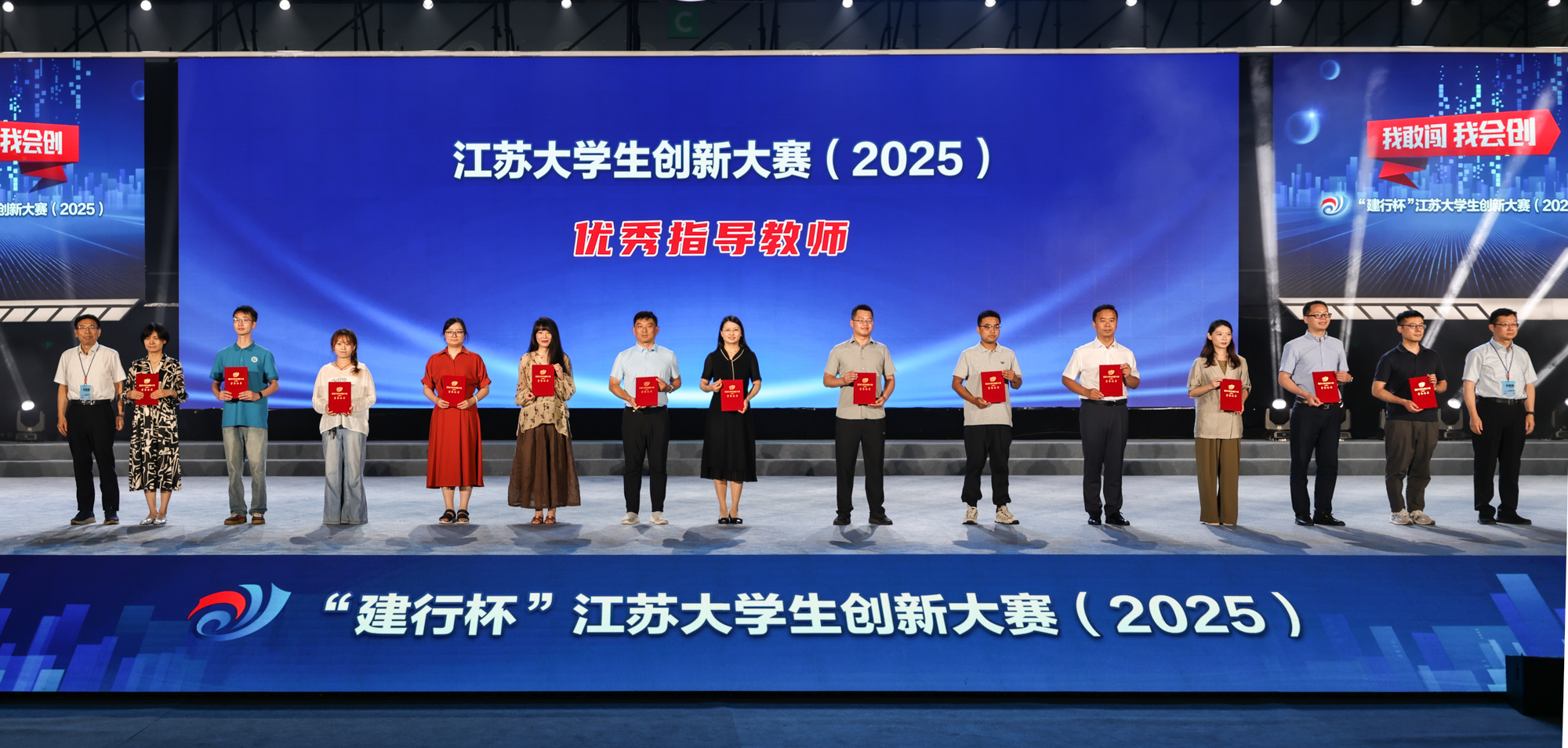 省教育厅副厅长杨树兵,校党委书记杨宇民,校长王建浦,省发展和改革委二级巡视员陆建康,省工业和信息化厅二级巡视员卢载贵,省商务厅二级巡视员王存,省科协党组成员、副主席夏军,中国建设银行江苏省分行党委委员潘劲松,校党委常委、副校长徐骏等出席颁奖典礼,分别为大赛冠亚季军项目、一等奖项目,以及优秀指导教师颁奖。